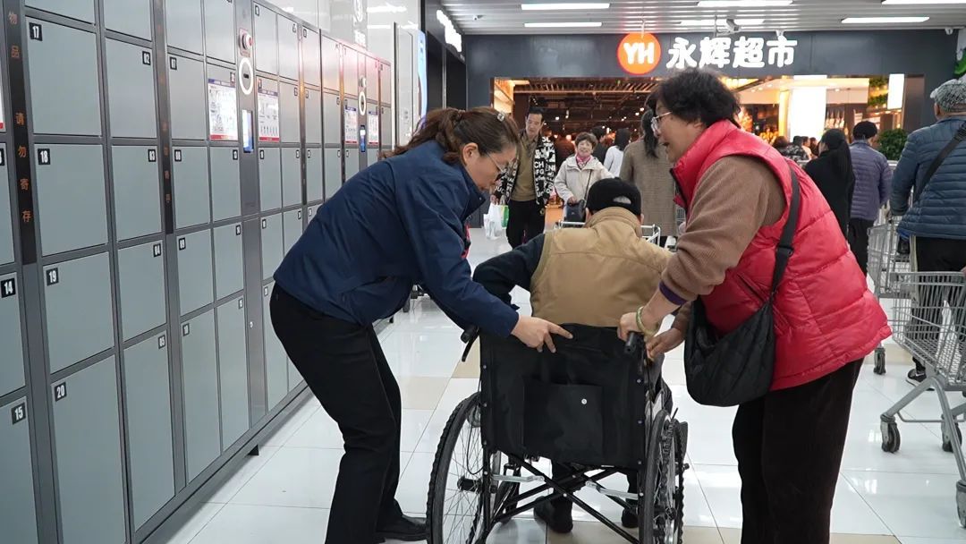 在超市入口处,新安装的智能化人脸识别寄包柜吸引了记者的注意。一对老夫妇在寄存物品时,叔叔轻触屏幕完成人脸识别,柜门随即自动弹开。一旁的盛阿姨起初有些疑惑,担心没有纸质小票会影响后续取件,经过工作人员解释后,她才恍然大悟,连连赞叹:“以前必须要小票,现在直接扫码就可以了,科技真先进,再也不用担心弄丢小票了!”
