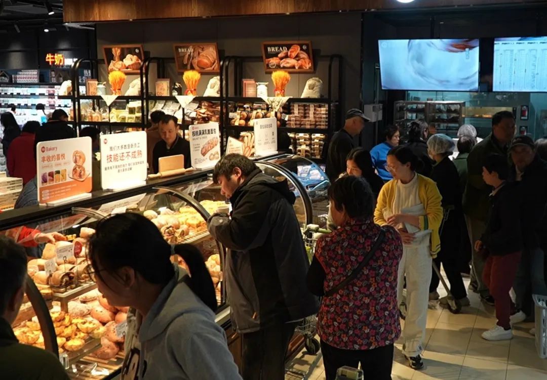 10点左右,记者走进了超市,改造后的卖场视野更开阔、区域划分更清晰。刚进门,就有不少顾客被烘焙区的试吃所吸引。一边是顾客购买热情的高涨,一边是工作人员马不停蹄地补货。烘焙负责专区工作人员小李趁着补货的间隙,向顾客介绍着永辉自主研发的“踏青系”春日限定单品:“这是四拼瑞士卷,融合茉莉、乌龙、抹茶、红茶四重茶韵,这是海苔酥松拉丝麻薯小贝,酥脆、松软、拉丝的三重口感十分丰富,是春游便当的热门之选……”