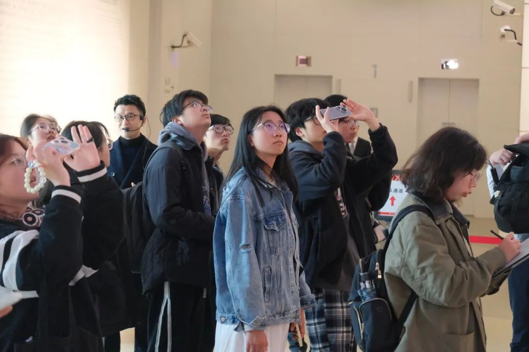 观看《大闹天宫》分镜头画面台本、吕其明的《红旗颂》曲谱手稿、《红楼梦》道具样子,听一段段电影厂和电影人的故事,在上海电影博物馆现场教学基地,24级西班牙语专业的韦伊在展品前驻足,“现场很有收获,电影很有趣也很有意义。自由选择基地后,大家更有热情了”。