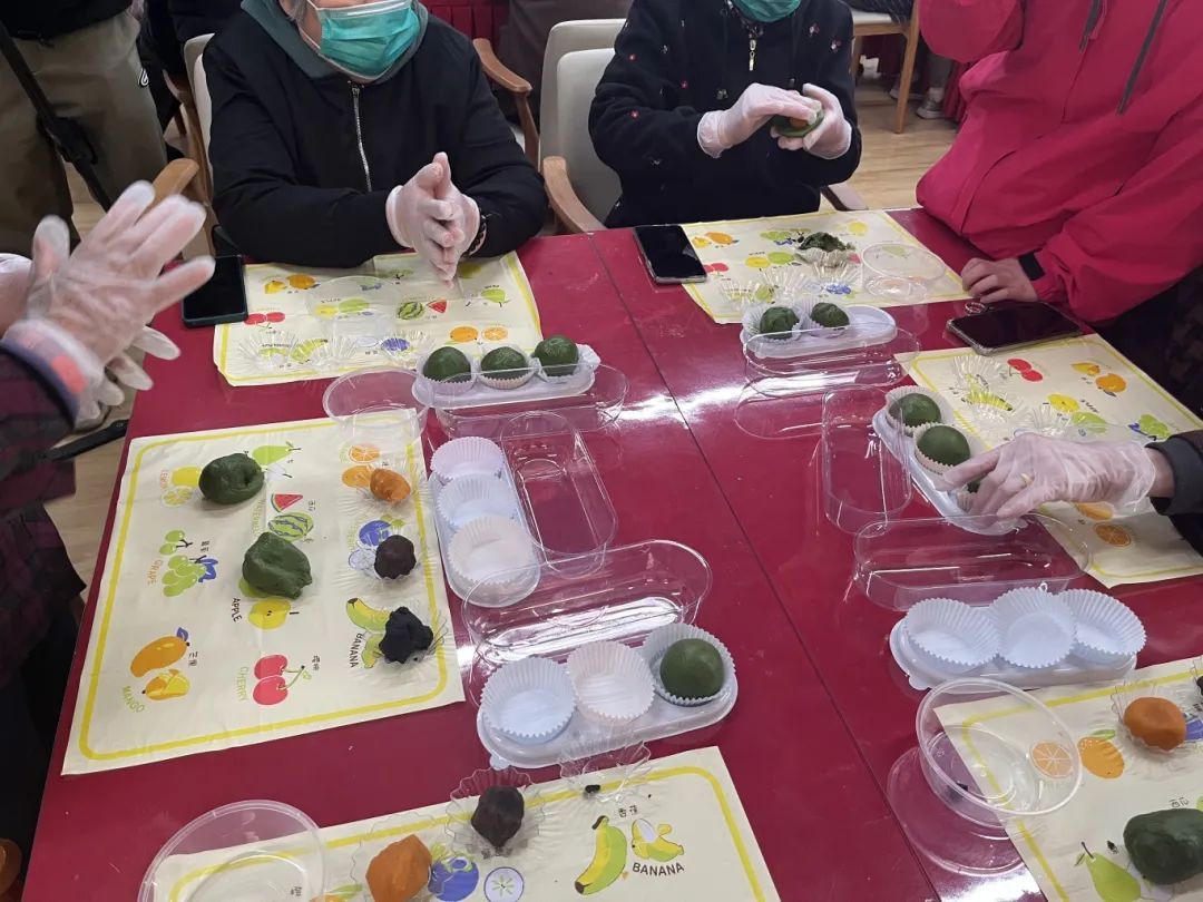 活动现场,清新的艾草香气铺满了整个活动室。工作人员提前准备好了由新鲜艾草汁、糯米粉和澄粉制成的面团,还特意为老人们准备了红豆沙、黑芝麻、咸蛋黄三种口味的馅料。
