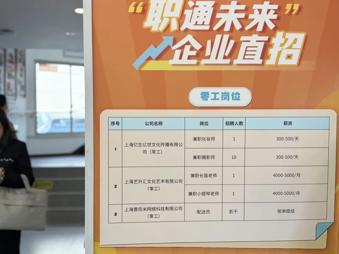 现场,曲阳路街道新业态就业集市同时开启,聚焦应届毕业生、失业人员、新就业群体、退役军人及军属等重点群体,设置零工岗位、退役军人优先岗位,由专业服务人员组成“智囊团”,提供创业担保贷款、零工劳动权益保障等“一对一”咨询服务。