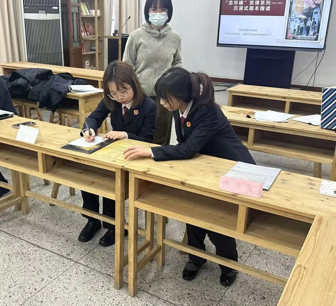 活动中,全体团员参与了红色剧本围读《遇见龙华2591》。通过角色扮演、实景搜证等互动形式,大家化身革命志士,在龙华监狱遗址区演绎了夏、秋、冬、春四幕故事,亲历革命者的信仰与抉择。在“囚室”重温入党誓词、高唱《国际歌》的环节中,青年们以沉浸式体验感悟先烈革命的赤诚初心。
