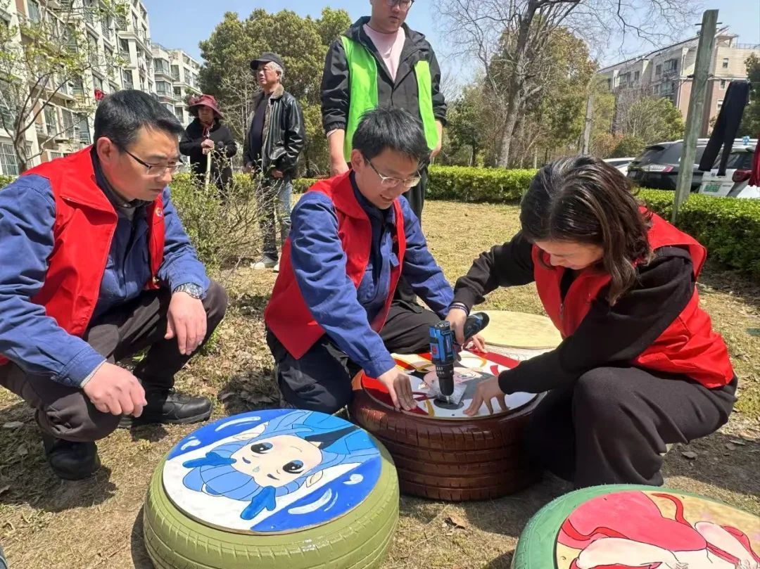 清洗、晾晒、环保漆涂刷、绘画、装订,一套流程下来,废旧轮胎秒变ins风桌椅。“轮胎桌椅组”的青年志愿者们将废旧轮胎与木板巧妙组合,打造出别具一格的桌椅,为小花园提供实用的休息空间,成为社区中一道亮丽的风景线。