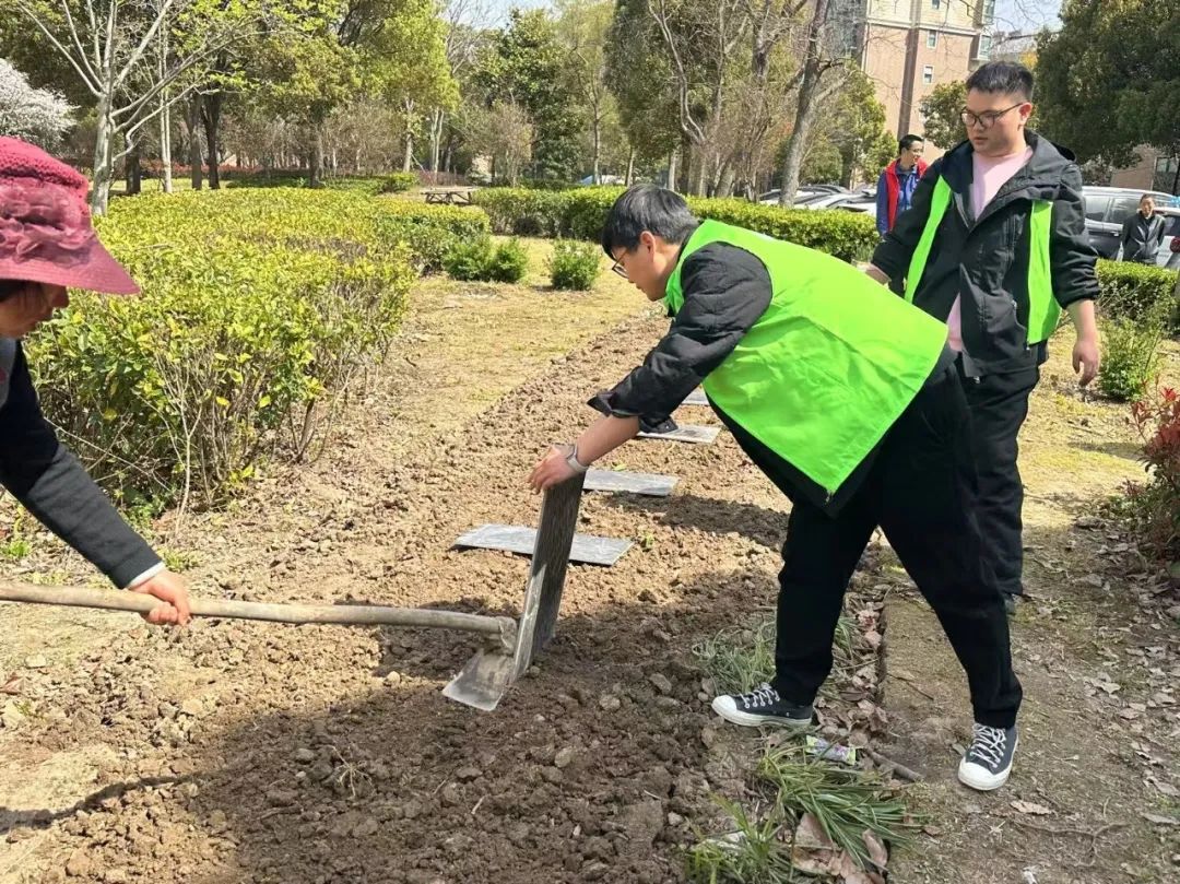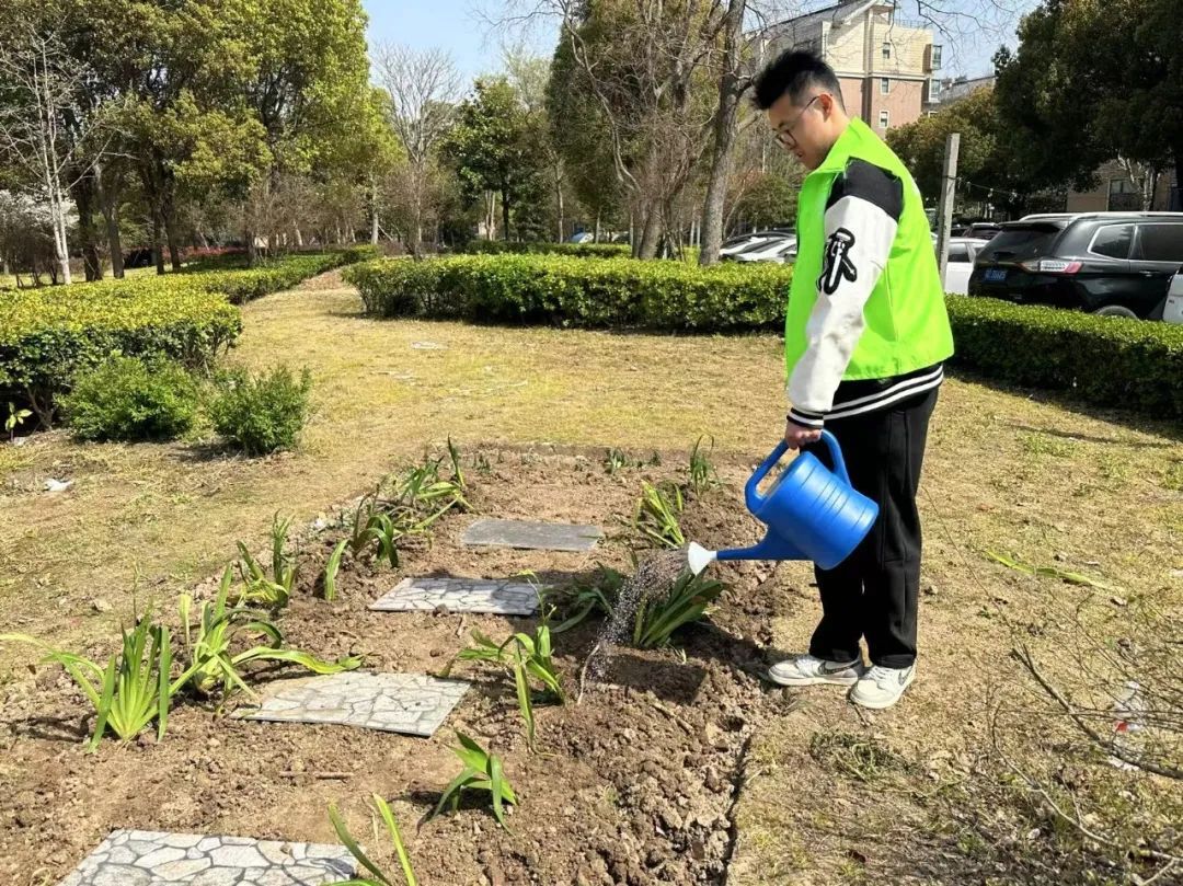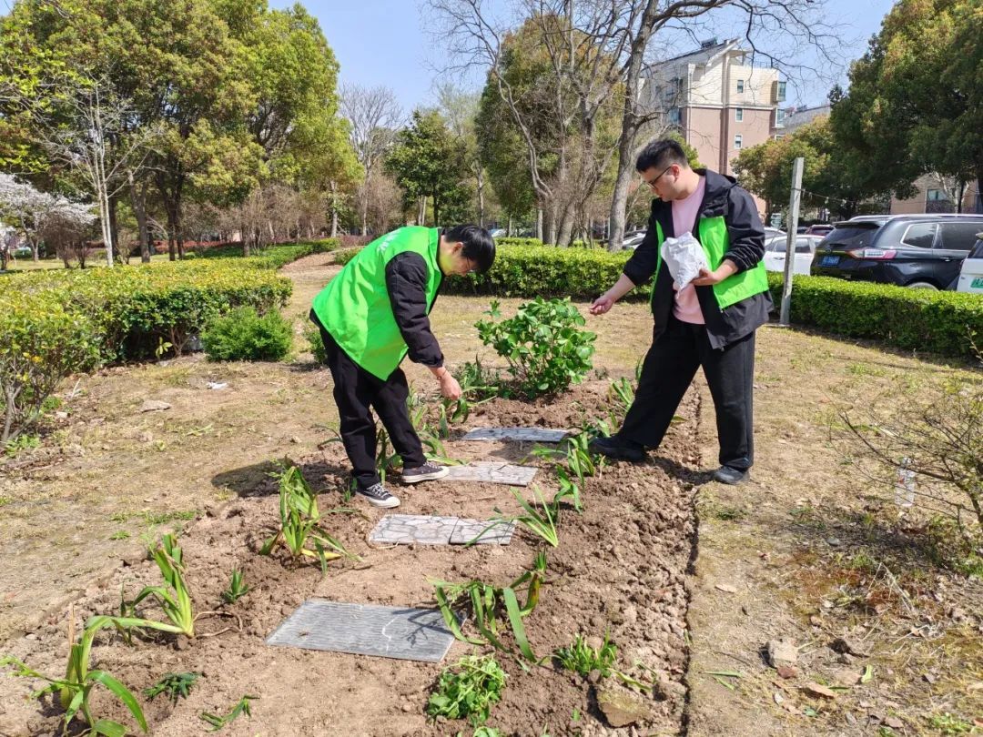 “花苗种植组”的青年志愿者们为社区小花园精心搭配绿植,有的自带花苗,有的在小区内寻觅可扦插、移植的花苗,还有的购买花籽播撒。