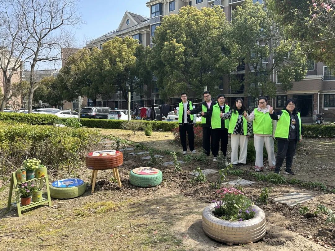 旧石板铺设成蜿蜒步道、旧木板变成创意花架、奶粉罐摇身一变成为花盆……“小景观搭建组”的青年志愿者充分发挥创意,在他们的巧手下,这些看似普通的废旧物品焕发出独特的魅力,让社区的每一个角落都充满了生机与活力。