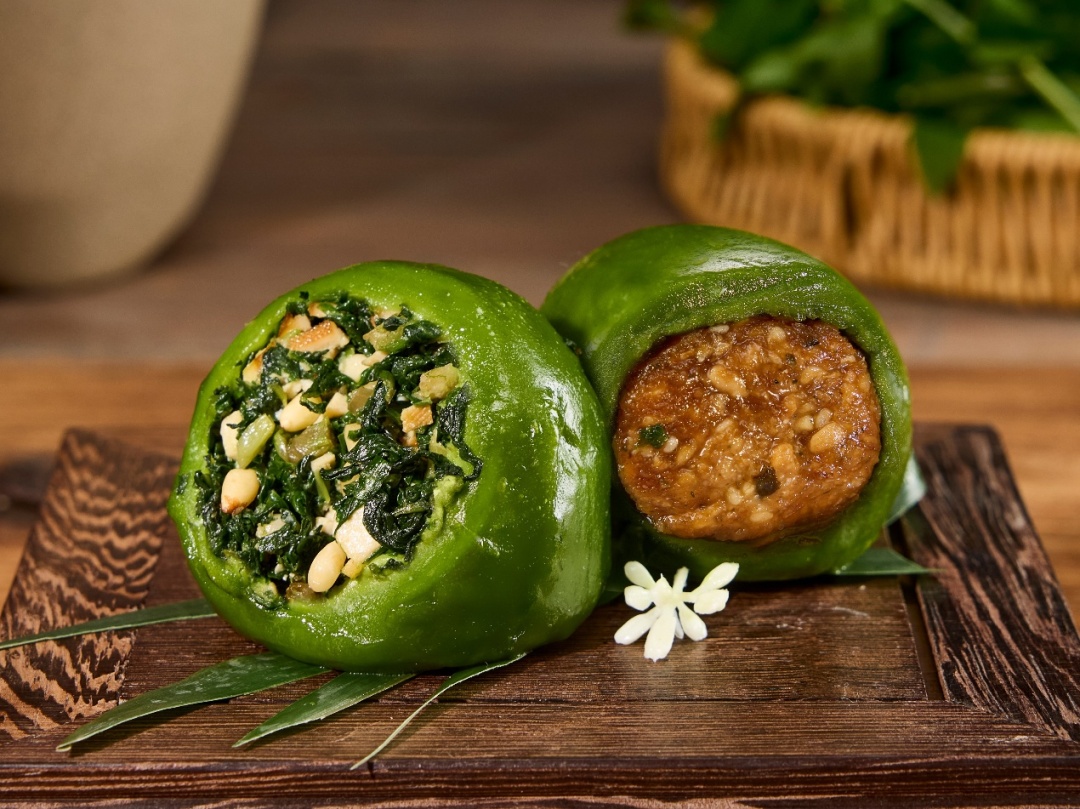 招牌菜“烤麸”邂逅传统青团,配以笋丁点睛,获得醇厚咸鲜口感
