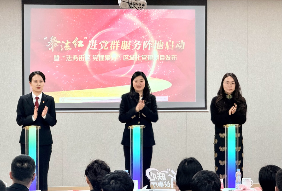2025年4月3日,在上海市奉贤区人民法院(以下简称奉贤法院)与上海市奉贤区南桥镇(以下简称南桥镇)共同开展的“‘奉法红’辉耀南桥 法治春风润民心”党建共建活动中,受邀前来的商户和街区代表在普法讲座上迫不及待地向法官们抛出了求助、求知的“橄榄枝”。 近年来,奉贤法院坚持以党建引领发展新时代“枫桥经验”,从贯穿奉贤东西两翼的奉城法庭“新红炉”到柘林法庭“柘里尚学”,从扎根各个街镇村居的“奉法客堂间”和“青年驿站行”,到足迹覆盖全区的“奉法致和”普法讲师团,建机制、搭平台、创品牌,积极探索融入基层社会治理的最优解,切实将矛盾纠纷解决在萌芽、化解在基层。 如今,这一抹“奉法红”飘扬到了“旗聚南桥”,与会领导共同按下启动键,“奉法红”进党群服务阵地暨南桥镇“法务街区 党建聚力”区域化党建项目正式启动。 ◆“奉法红”进党群服务阵地是奉贤法院推动将党建与业务融合,将网格化党建与基层社会治理融合的强基惠民行动。 ◆“法务街区 党建聚力”区域化党建项目是南桥镇以法治赋能自治、善治的积极探索。 启动仪式上,奉贤法院执行局党支部、商事庭党支部分别与南桥镇第一街区党支部、第三街区党支部签署党建共建协议,通过“联合共学、联动共商、联建共促”,创建党员教育新模式,搭建协商议事新平台,组建法务街区新力量。 由社区报到党员、流动党员、沿街商户“小个专”志愿者组成的“法润星光团”南桥镇街区法律宣传志愿队代表庄严宣誓: 以诚信之基,铸南桥自治之魂; 以合作之念,聚南桥共治之力; 以共营之举,成南桥善治之路! 为构建人人参与,人人负责、 人人奉献、人人共享的 城市治理共同体贡献力量! 奉贤法院和南桥镇将以此次党建共建为契机,以“党建红”引领“司法蓝”,以“法务街区”汇聚合力,在推动党建业务深度融合中,实现司法裁判理念与基层社会治理经验的互学互鉴,根据不同街区的特点量身定做普法菜单,并借助党群阵地的枢纽功能和街区宣传志愿者队伍力量,延伸“审理一案、治理一片”覆盖面,以法治力量提升基层治理效能,共同谱写南桥镇法治建设与基层治理融合发展的新篇章。