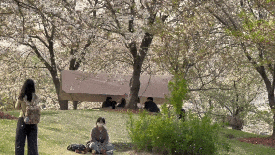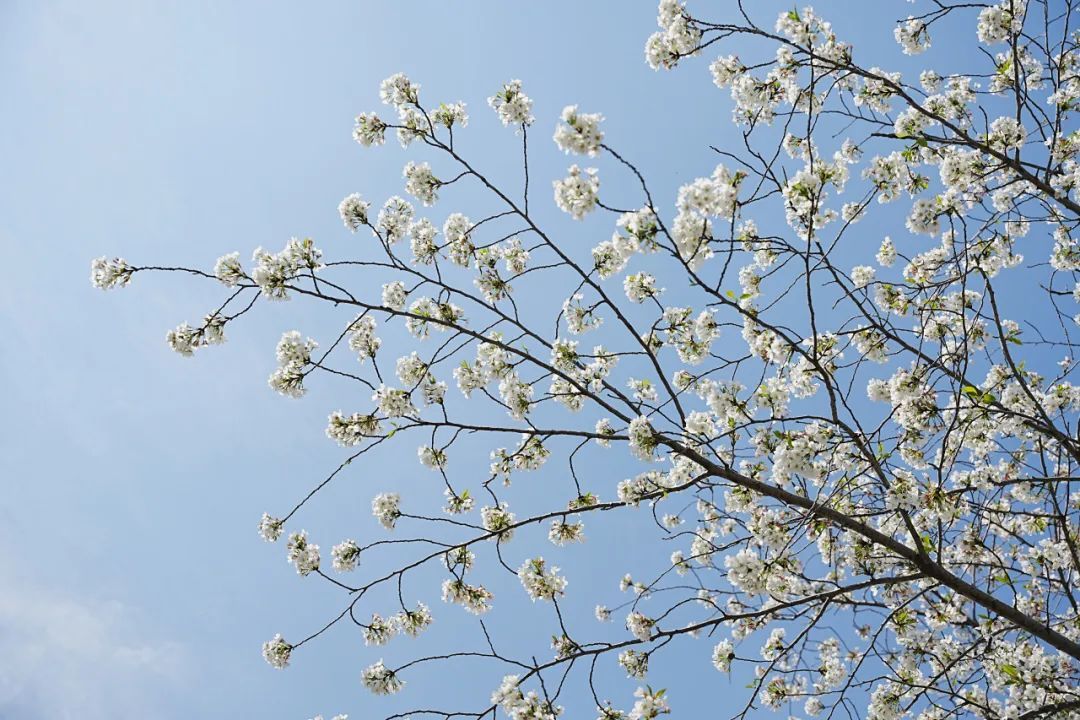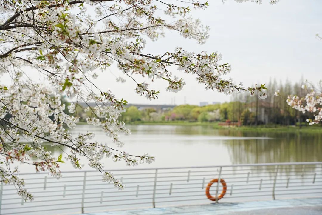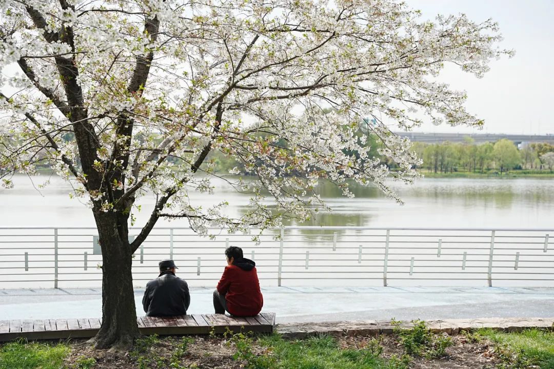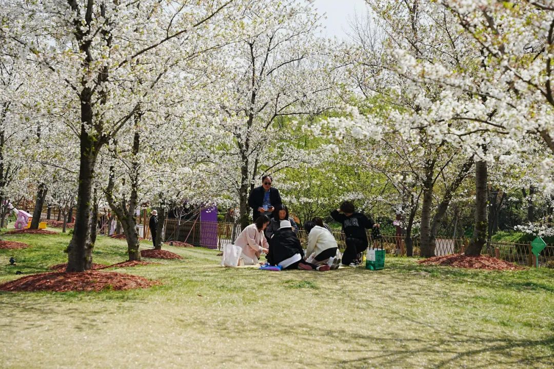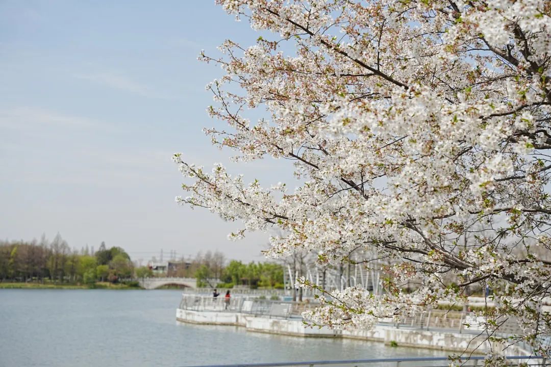 晚樱大面积萌动,目前处于初花阶段,关山、兰兰、郁金等预计在清明假期进入观赏期。