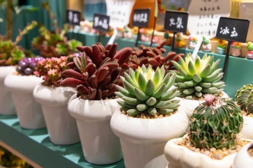 店内还有不少迷你的多肉植物整齐排列着,胖嘟嘟、可爱饱满,简直萌到心上。