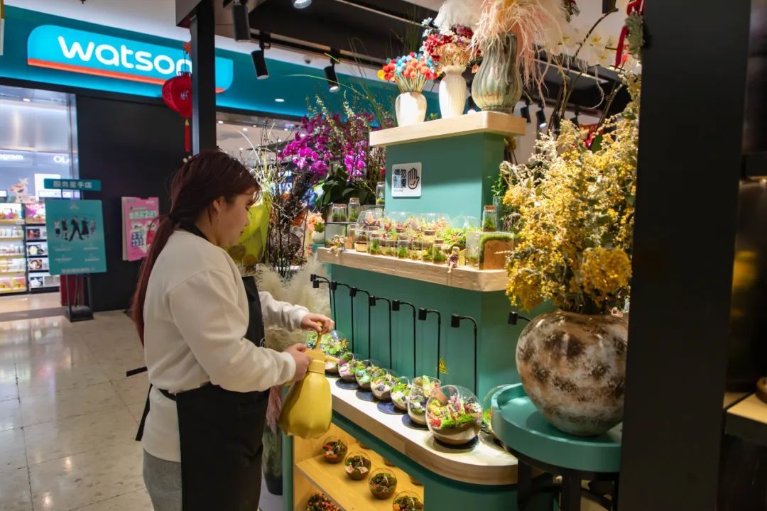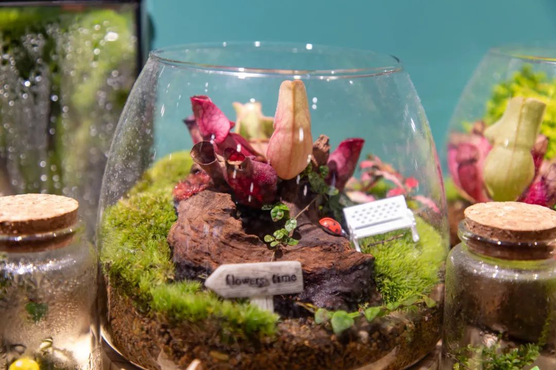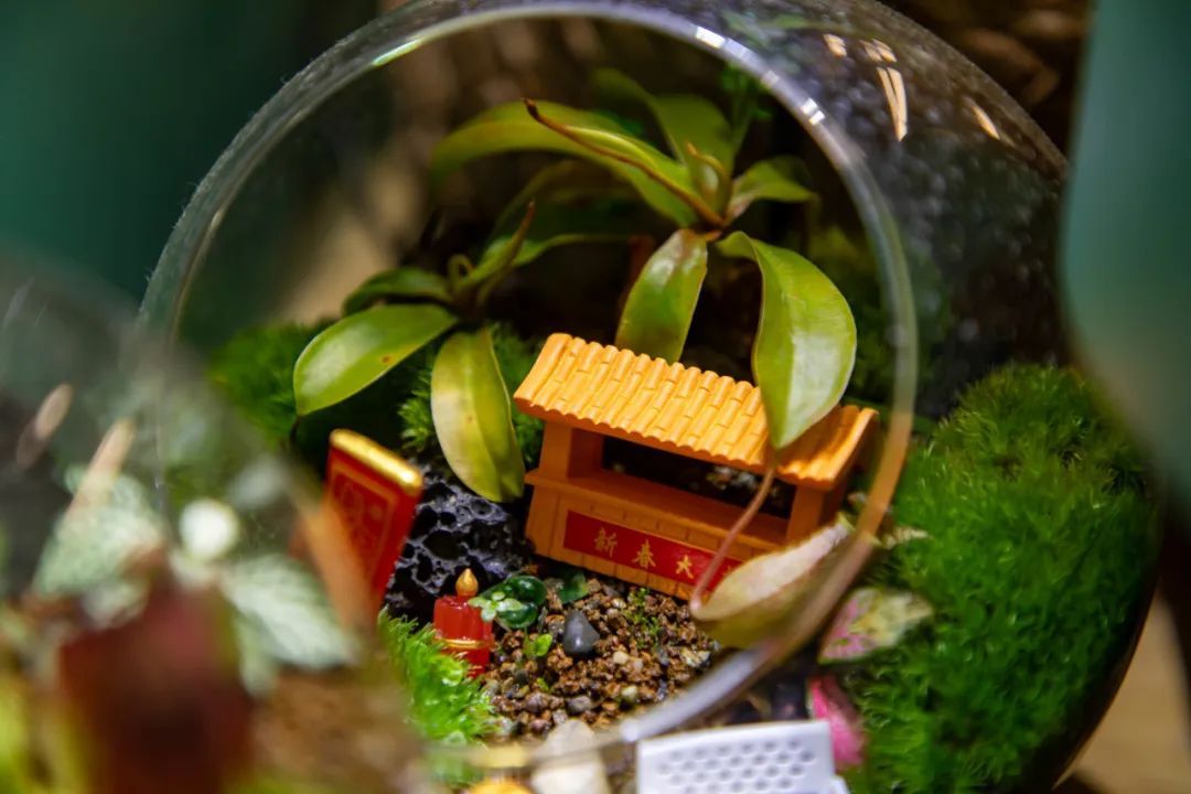 问·春夏这家小店主打微缩景观、多肉植物等,巧妙运用苔藓和捕蝇草等植物,营造特别的意境,“一盆一世界”,每一盆微缩景观植物都仿佛在诉说着一个个小故事。