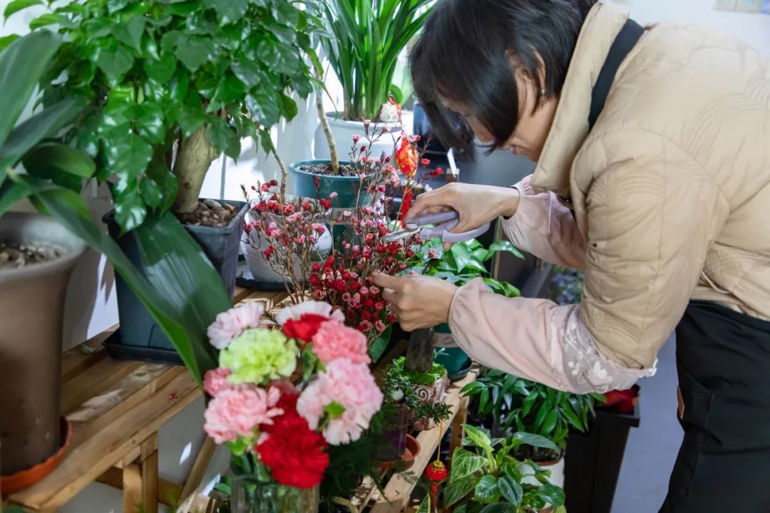 一位前来买花的学生说:“春天到了,我想在买一些绿植妆点一下宿舍,所以和室友们结伴来逛逛,挑选喜欢的盆栽带回去。”