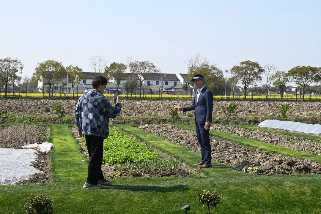 市民赵女士和倪女士结伴骑行而来,从村头一路拍照打卡,来到宝嫂家上海小院。“平常一直刷到他们夫妻俩的视频号,也有很多朋友过来打卡过,所以今天就骑过来看看。正好碰到宝哥也在院子里,也很随和招呼我们随便参观。”市民倪女士介绍道。