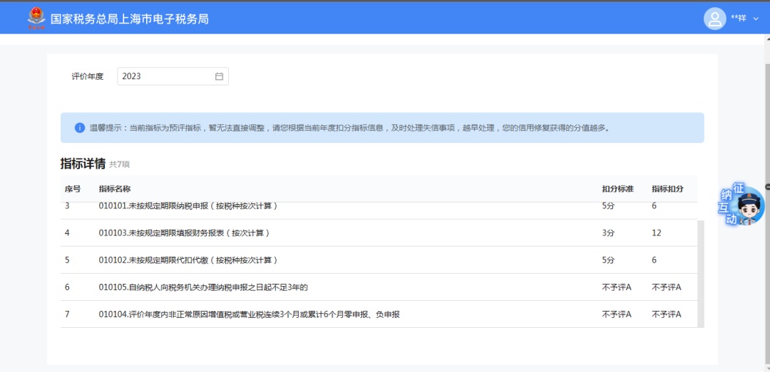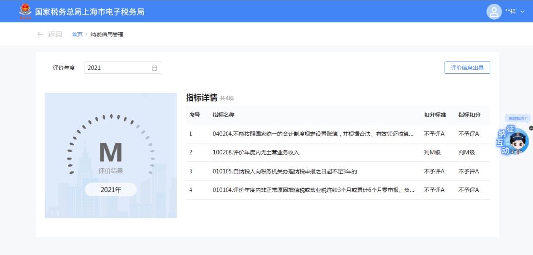 第二步:进入功能后,会展示当前年度纳税信用评价情况。