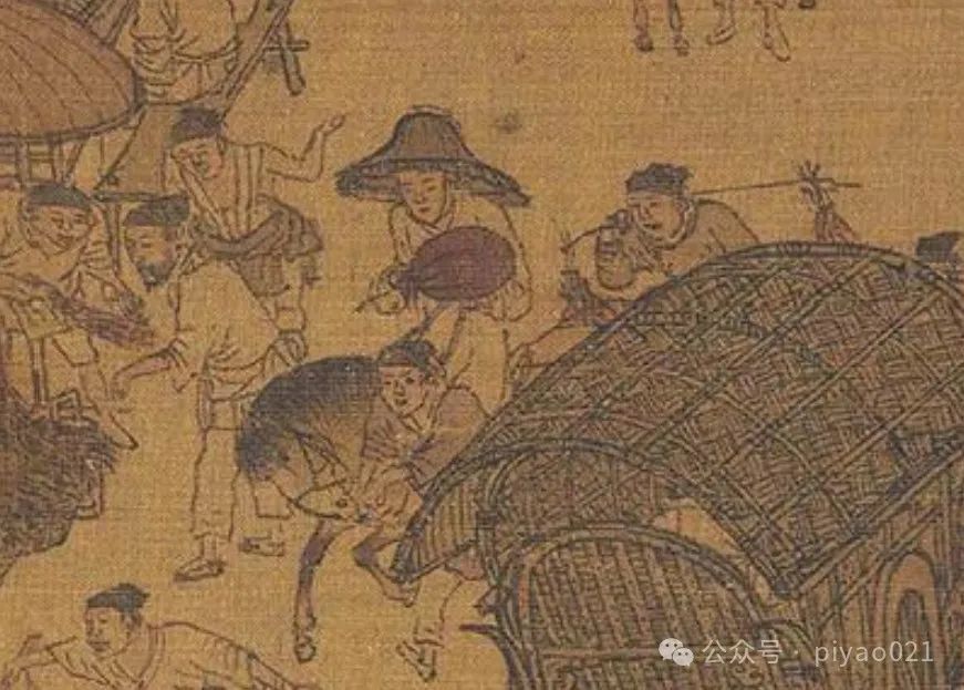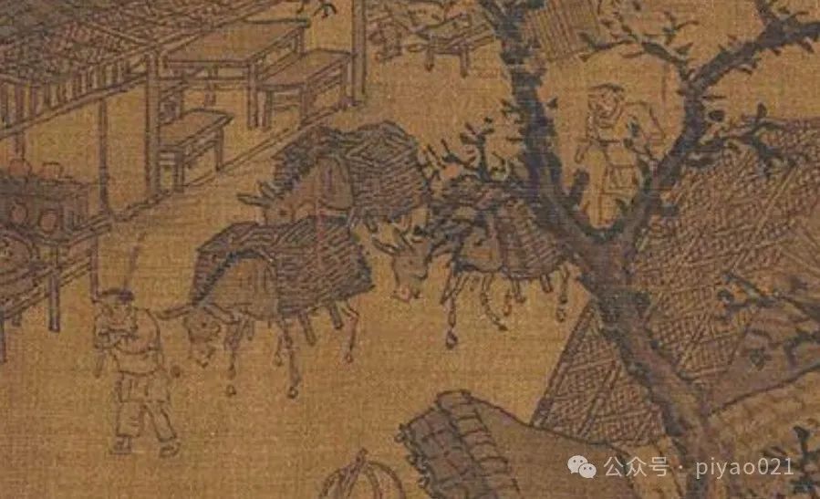画卷里有秋天:临河酒店挂出了写着“新酒”的酒旗,“新酒”指的是用当年秋天新谷酿成的酒,春天卖新酒不太现实;城外城内都有驴队驮着木炭,是否意味着冬日将至,人们正准备木炭御寒……