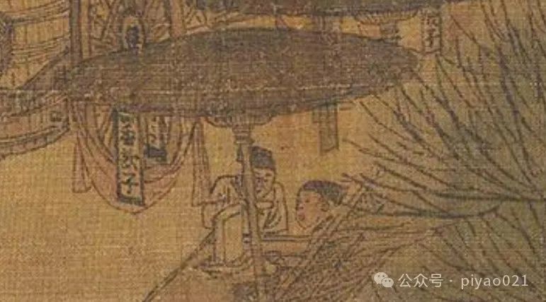 画卷里有夏天:携扇出行的人已经不少,按照汴京的天气,如果是清明,似乎还不需要扇子;有的店铺挂着招牌卖“饮子”,也就是饮料;还有人已经开始赤膊……