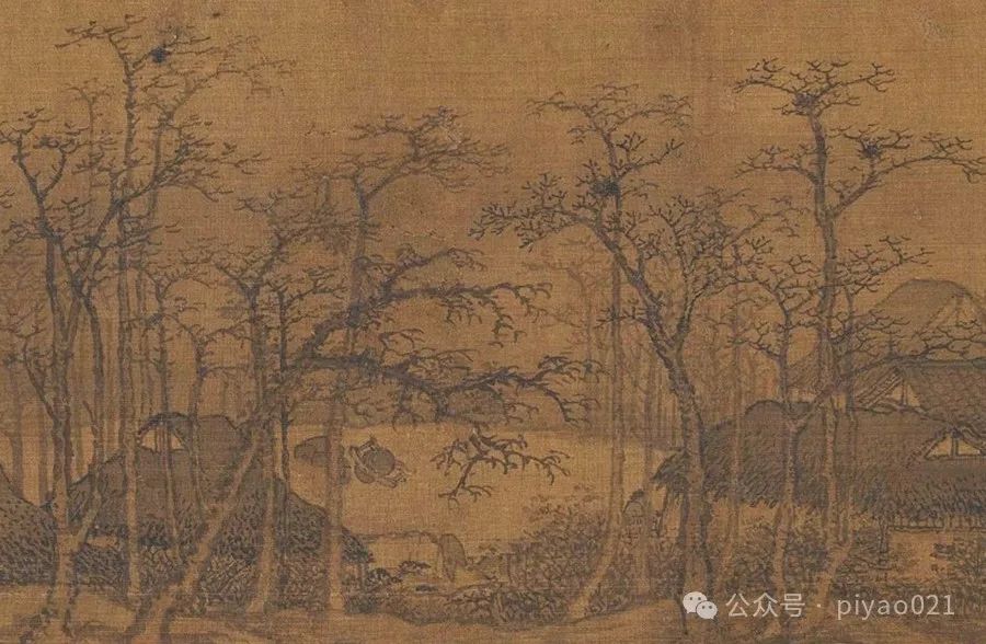 画卷里也没有落下冬天:枯木寒林,连枝丫间的鸟巢都清晰可见,似乎正在诉说冬季的清冷萧瑟……