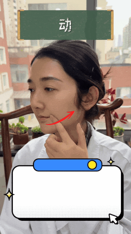从嘴角向耳垂方向推压,让僵硬的嘴角重新拥有上扬的能力。
