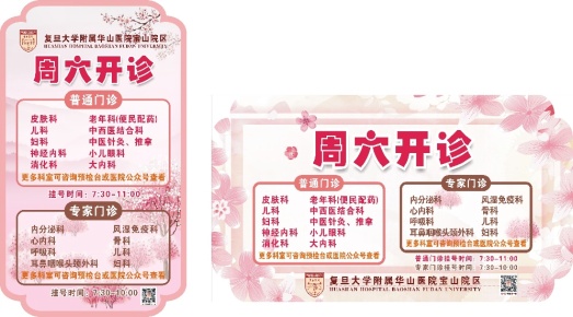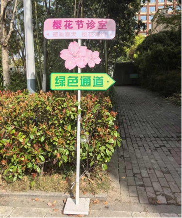2. 停车场及门诊入口等关键位置,张贴樱花氛围的开诊海报,便于市民知晓诊疗信息。
