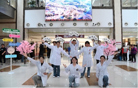 赏樱踏青时来就诊,也要保持好心情!康复医学科开展“樱花健身操”快闪活动。