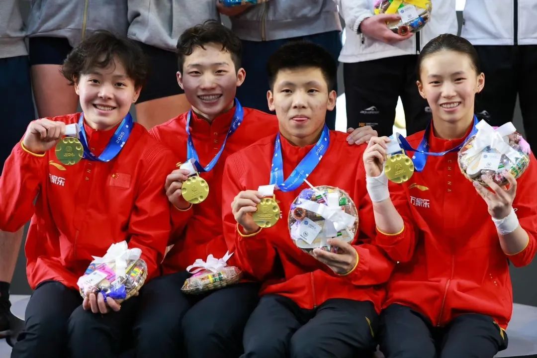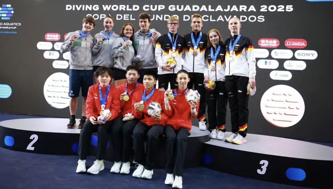 4月4日,2025年世界泳联跳水世界杯瓜达拉哈拉站第二个比赛日,中国队夺得混合团体金牌。 这是本站世界杯决出的首枚金牌。由陈芋汐、陈艺文、王宗源、程子龙组成的中国队以489.10分夺冠,意大利队和德国队分获第二、三名。 赛后,陈艺文接受采访时表示:“混合团体对我们来说一直是比较轻松的项目,大家心态比较放松,挺享受这场比赛。” 王宗源则对自己的表现有些不满意。“今天的混合团体比赛可能是我有史以来发挥最差的一次,可能思想没有紧起来。所以今天的比赛是靠我的队友,我也相信他们能把分数追回来。” 程子龙是首次参加世界杯。他说:“这是我第一次比世界大赛,参加这个团体决赛很兴奋、很紧张,比赛中我努力克制紧张的心态,也相信自己能够做得很好。” 陈芋汐说:“我今天跳了两个昨天失误的动作,能跳成这样还是比较满意。” 当日进行的两个单项预赛中,陈艺文、陈佳发挥稳定,以前两名的成绩晋级女子3米板决赛;程子龙、朱子锋在男子10米台预赛中分列第二、第三,晋级决赛。 北京时间4月6日凌晨,陈芋汐、全红婵将在女子10米台决赛中上演“巅峰对决”。 赛程安排(北京时间) 图:世界泳联 文:缪培源 来源:新华网 编辑:李纬、江妍 审核:郭偲燕 点击上图小程序 小体推荐 两周岁的上帆成了上海的国际化“烫金名片” 和世界冠军成为校友!这几个区运动队招生啦 共启新篇!2025年城市业余联赛招标结果出炉 上海市体育健身行业合同示范文本发布,首批782家门店和场馆率先签署承诺书 2024年上海市体育赛事发展专项资金项目申报指南 为一场赛事赴一座城!2025年,跟着赛事游上海 小体声明 由于条件所限,可能出现未署名的原创图片或文字,在转载之前无法与权利人联系授权及稿酬事宜。欢迎权利人与编辑部联系署名授权、稿酬等事项。联系邮箱:shtyxxy@126.com