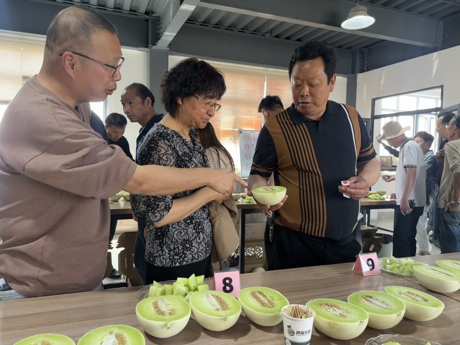 当天现场还进行了甜瓜新品种展示品鉴活动,包括莱蜜尔、东方蜜6号、酸奶甜瓜等,吸引众多合作社品鉴体验。