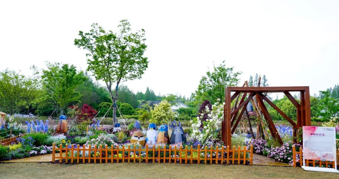 麻雀、灰喜鹊、珠颈斑鸠、乌鸫……景点《啾啾好食光》根据上海常见四种鸟类的饮食和筑巢习性进行植物选择与构筑物设计,通过趣味互动装置,对鸟类生活进行科普。设计意在关注城市鸟类保护,倡导人与自然和谐共生理念。不少来春游赏花的学生观后很有感触。