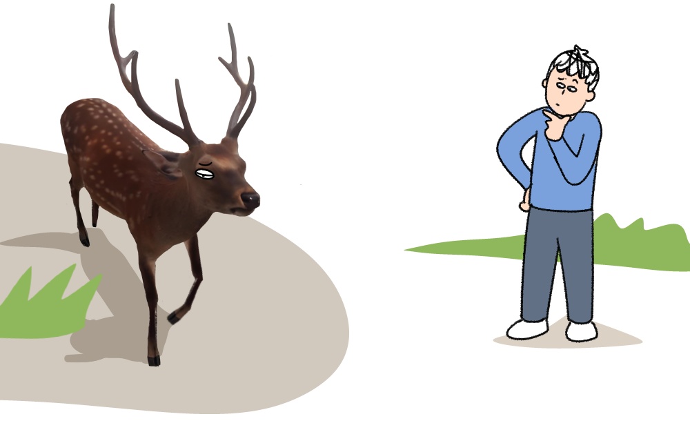 周末,去动物园玩,里面的鹿走路一瘸一拐的。