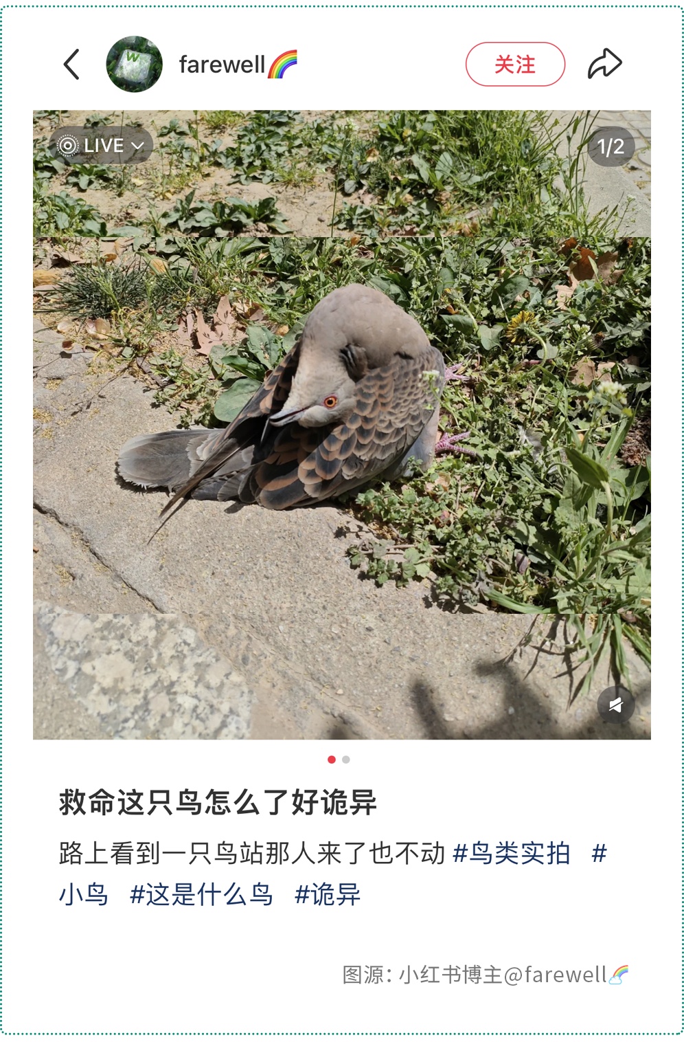 走近一看,是一只姿势奇怪的鸟