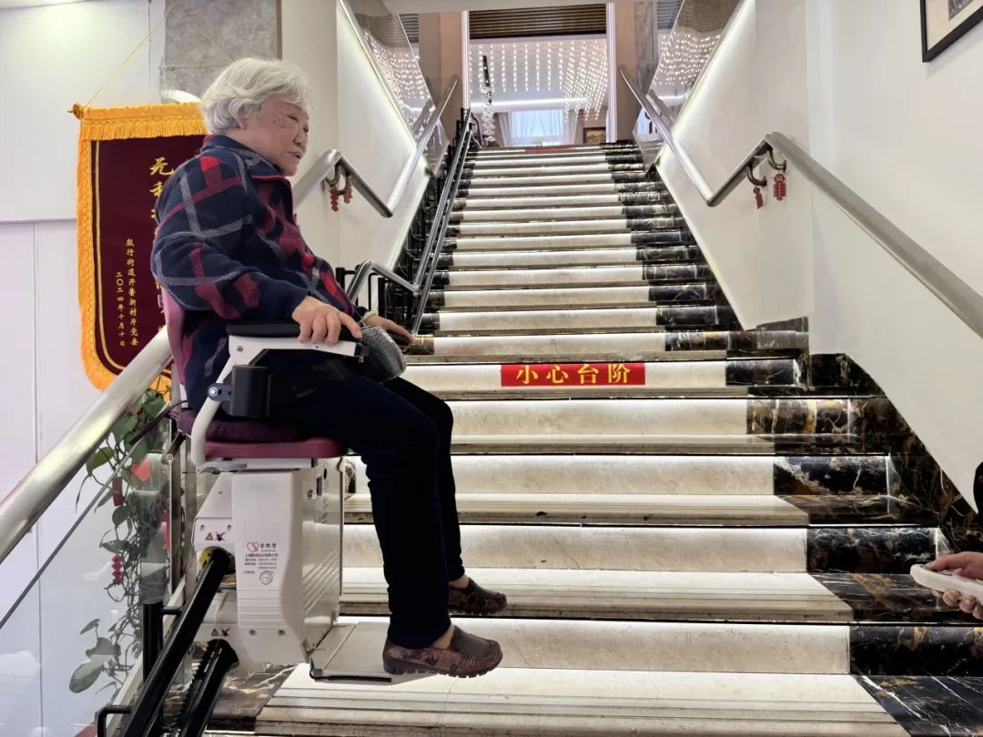 近日,78岁的方筱萍阿姨落座专属座椅,系上安全带。遥控按钮开启后,阿姨仅用1分钟,便平稳抵达“新小英精菜坊”二楼用餐区。而在一个月前,这段24级的台阶,还是她和许多高龄老人的“拦路虎”。 中国超大城市老龄化加剧背景下,适老化改造的需求越来越迫切。“新小英精菜坊”是一家社区餐馆,规模不大但却在开鲁路上扎根20余年。随着周边小区老年居民比例逐年攀升,老年群体就餐“上楼难”的痛点越发凸显。 据统计,殷行街道拥有近20万人口,60岁以上人口占户籍人口50.02%,高龄独居老人共计2810人,是一个人口密度大、老龄化程度高的社区。在老龄化“加速度”与银发经济“新赛道”交汇的当下,如何通过精细化治理破解民生痛点,成为城市发展的必答题。 “以前我们两口子用藤椅,把老人抬上楼,但是有的叔叔阿姨心脏不好,你一抬他们就像坐过山车似的,心脏吃不消。”店主何芝会说。从那以后,夫妻俩便萌生了改造楼梯的想法。“电梯不是商业投资,而是给老街坊的一份心意。”在殷行街道第一综合网格的牵线下,商户、居民代表与街道平安办、服务办、管理办等多次召开“睦邻议事会”,最终确定解决方案。在楼梯右侧安装一台限定一人乘坐的、最大负载重量120kg的无障碍升降椅,运行基本无噪音。考虑到安全,升降椅特地调慢了上下运行速度。如此一来,一分钟不到,老人就可以到2楼。 饭馆适老化改造的背后,是社区营商环境与睦邻友好的双向奔赴。方筱萍阿姨说,“对我们腿不好的人来说,吃饭上楼方便多了,也能叫上老朋友聚一聚。我自己的居民楼也装了电梯,生活真是越来越便利了。” 应对老龄化浪潮,既需要顶层设计的“大手笔”,也离不开街角巷尾的“小心意”。无障碍升降椅与台阶指示灯,这个饭店内不足10平方米的“微空间”,承载着多重价值:不仅解决老年群体就餐、社交的“最后一米”障碍。更为饭馆的老年客流量提升起到了正向作用。 殷行街道第一综合网格党建指导员范伟华表示,随着人口老龄化持续加深,适老化改造已从“选择题”变为“必答题”。“我们会持续关注社区居民的生活需要与心声,积极搭建沟通桥梁,让居民的幸福指数越来越高。”