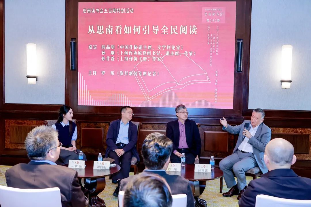 活动现场,阎晶明、孙颙、孙甘露三位作家、文学评论家开展了主题为“从思南看如何引导全民阅读”的对谈。