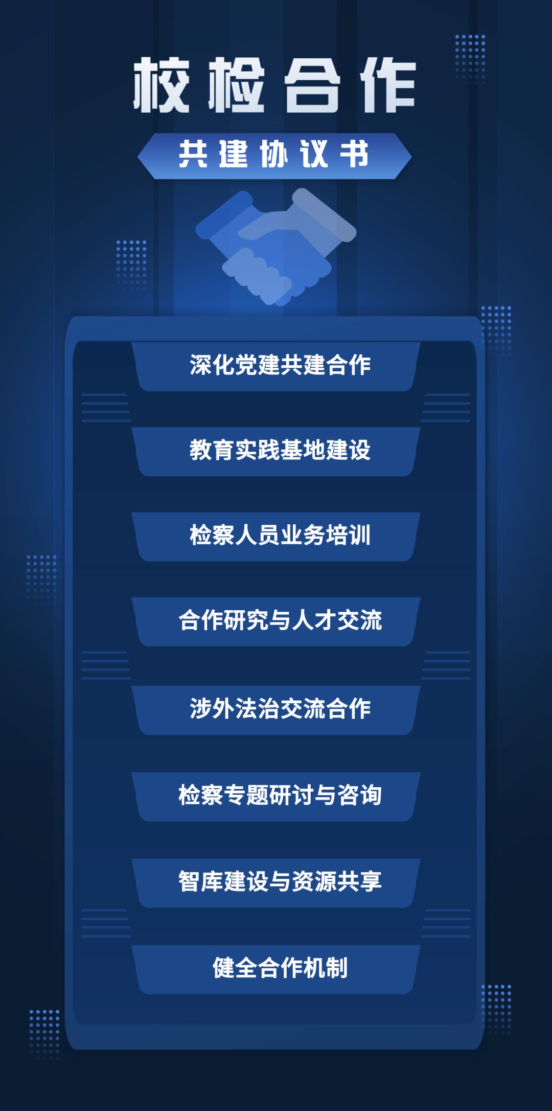 根据《合作协议》,双方将秉持“优势互补、资源共享、协同创新、共同发展”的合作理念,在党建共建、基地建设、人才培养、理论研究、涉外法治、互聘互派以及资源共享等多个领域开展全方位、深层次的合作。尤其是设立涉外检察实践基地,加强在涉外检察理论研究、域外法律查明、涉外法治交流合作等领域的合作。