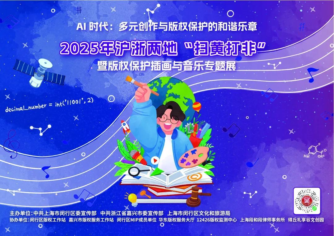 据悉,4月22日,沪浙两地“扫黄打非”暨版权保护插画与音乐专题展也将在闵行区得丘文创园接力开场,本次特展将以“艺术画笔+法治强音”为核心,精选音乐侵权、剧本杀盗版等7大典型案例,以插画场景还原维权现场,搭配非遗雕版拓印体验与神话IP“哪吒”创意呈现,让公众在沉浸式观展中秒懂版权保护逻辑,打造长三角文化版权保护新标杆。以“艺术+法治”双轮驱动,激活文化创新活力,构筑长三角版权保护新高地。