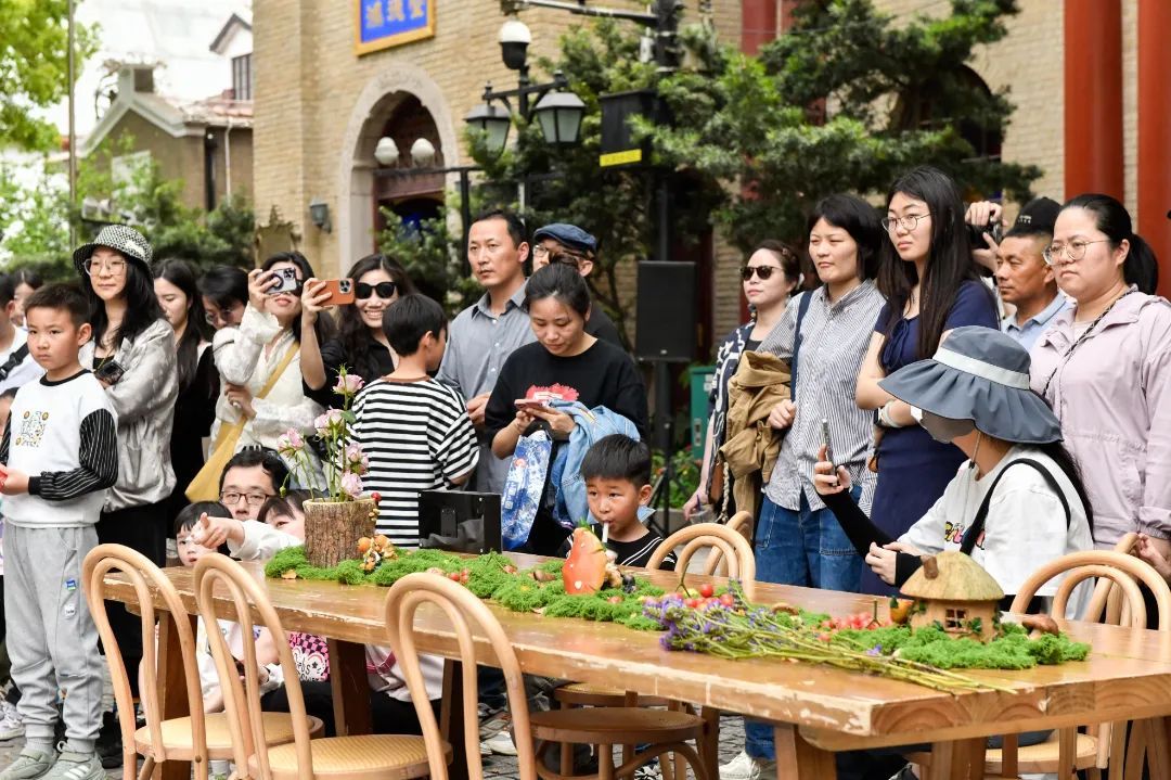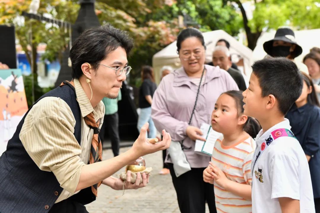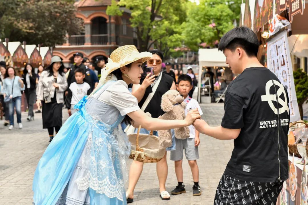 值得一提的是,本次演出不仅由专业演员组成主阵容,由穿梭于街区的市民游客“客串”,部分摊主也化身“临时角色”参与其中,一同完成戏剧情节。