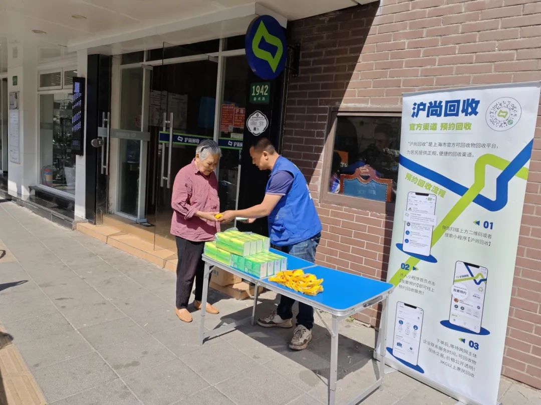 与此同时,曹家渡街道在各个惠民服务点开展垃圾分类宣传活动。现场,居民可以通过垃圾分类互动问答获得小礼品。“沪尚回收”工作人员告诉居民通过回收循环可以减少垃圾制造及原料消耗,有助于减少环境污染和资源的浪费。