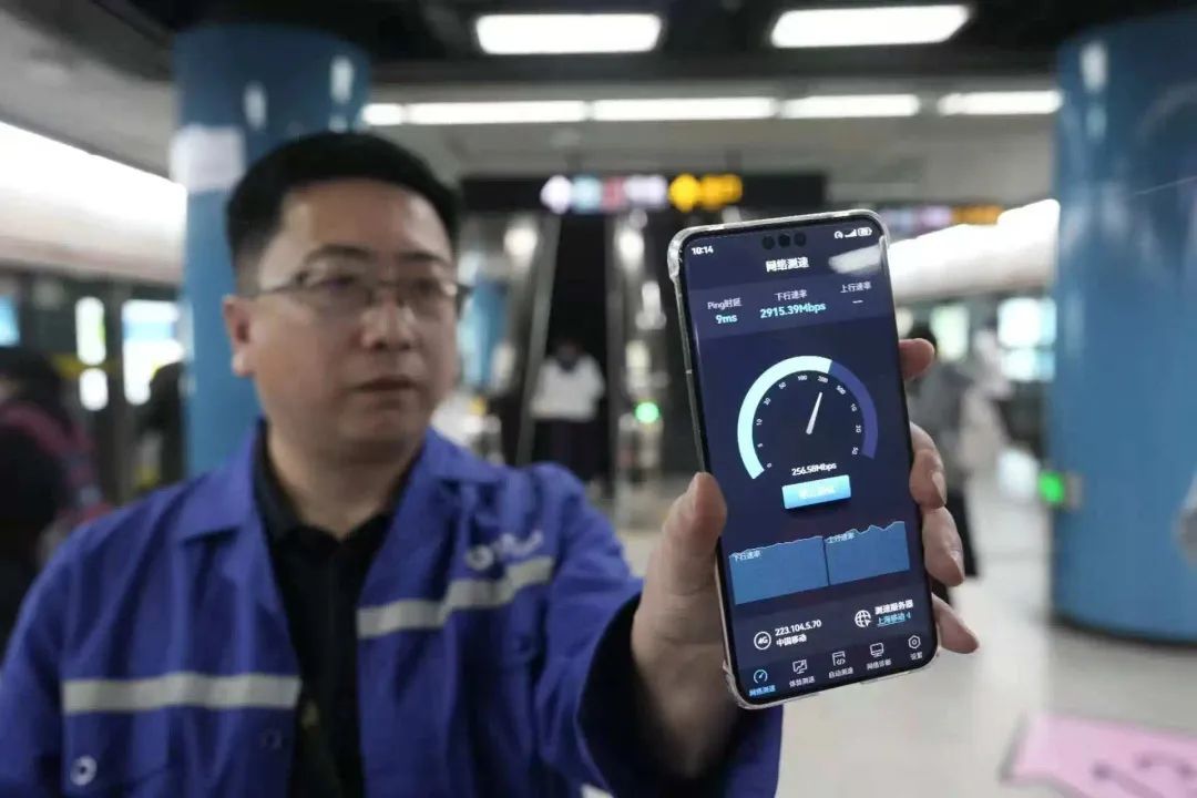 5G公众信号工程不仅实现了广覆盖,还聚焦高品质的乘客体验和智慧场景应用,实现了80%线路段的5G-A(5G-Advanced)网络升级。实测用户站厅站台及隧道下行平均感知速率均高于600Mbps,最高峰值速率超过1Gbps,为每天数以千万计的地铁乘客提供更优质的移动通信网络服务。