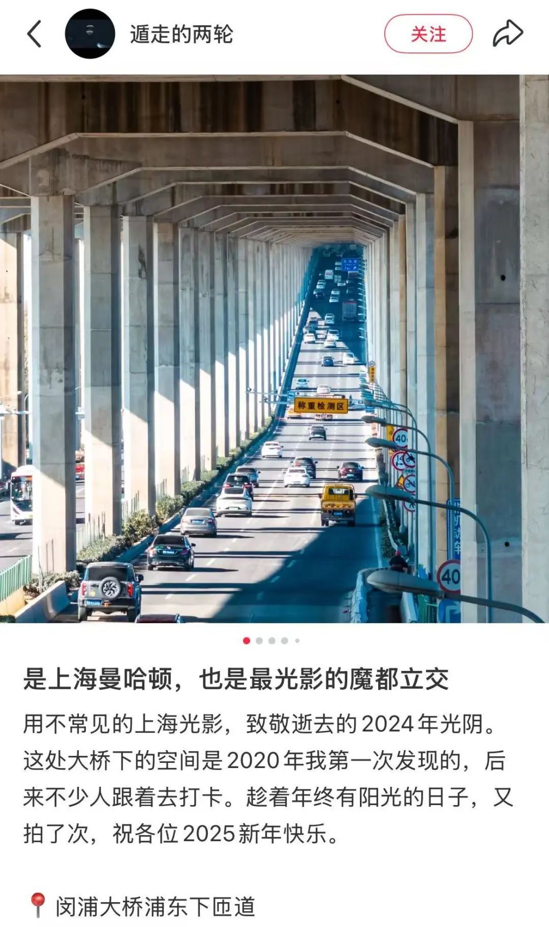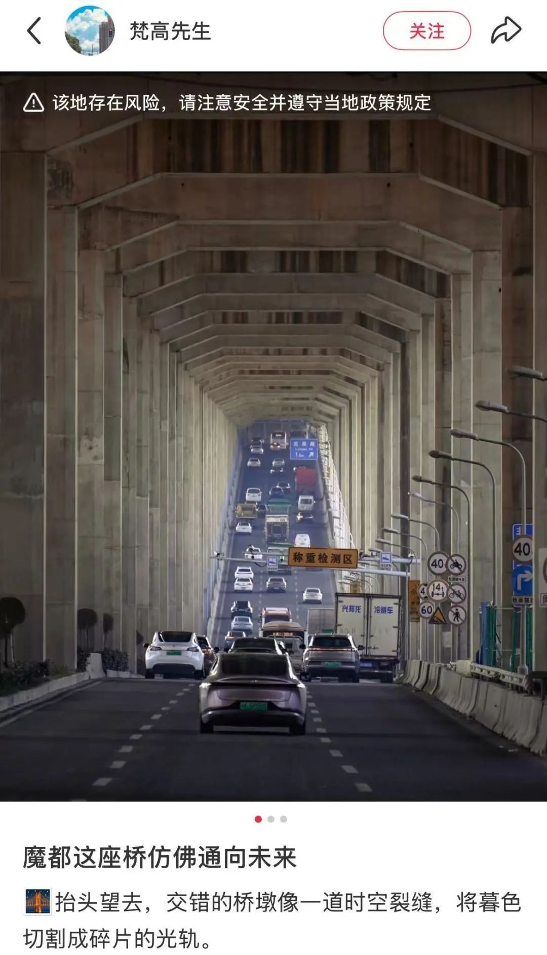 也晒出了自己途经闵浦大桥的照片