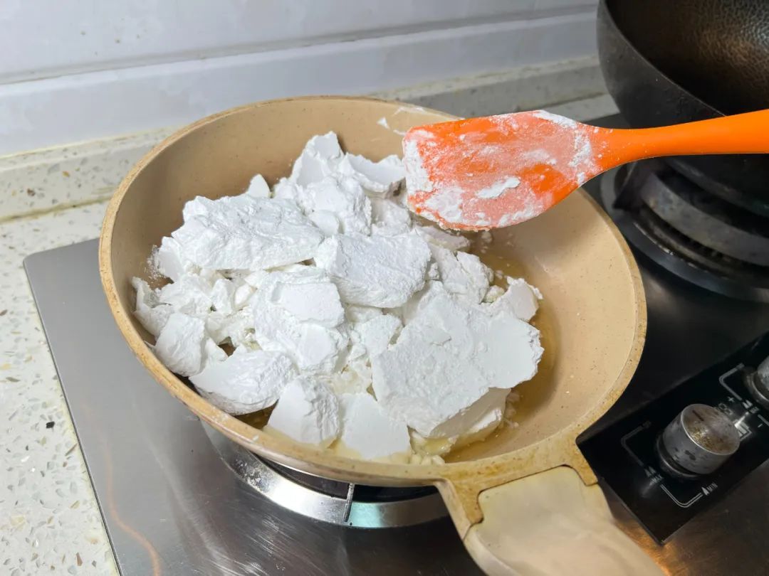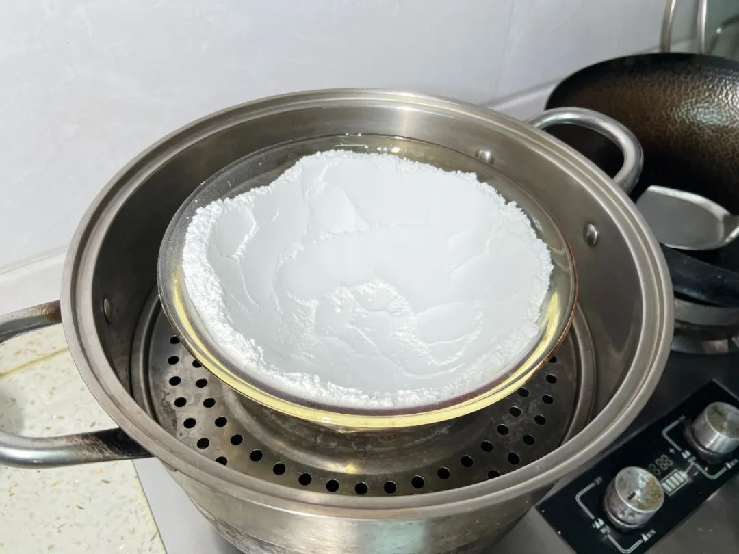 4.160克粘米粉、160克糯米粉混合均匀,上锅蒸40分钟。