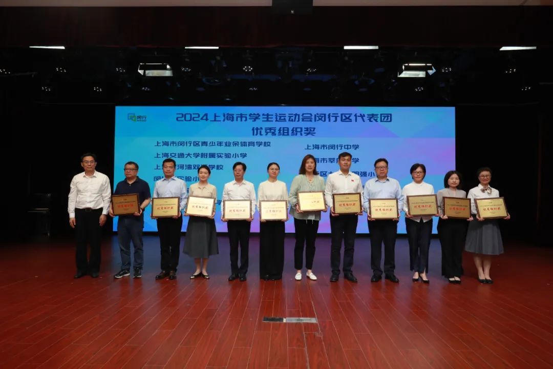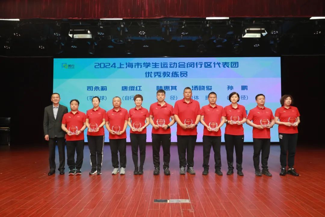 会上同步举行2024市学运会获奖学校、教师、教练表彰仪式,为11所学校颁发2024上海市学生运动会闵行区代表团“优秀组织奖”,为10位教师颁发2024上海市学生运动会闵行区代表团“最佳活力园丁”,为10位教练颁发2024上海市学生运动会闵行区代表团“优秀教练员”。此外,还聘任了一批学校体育专家顾问。