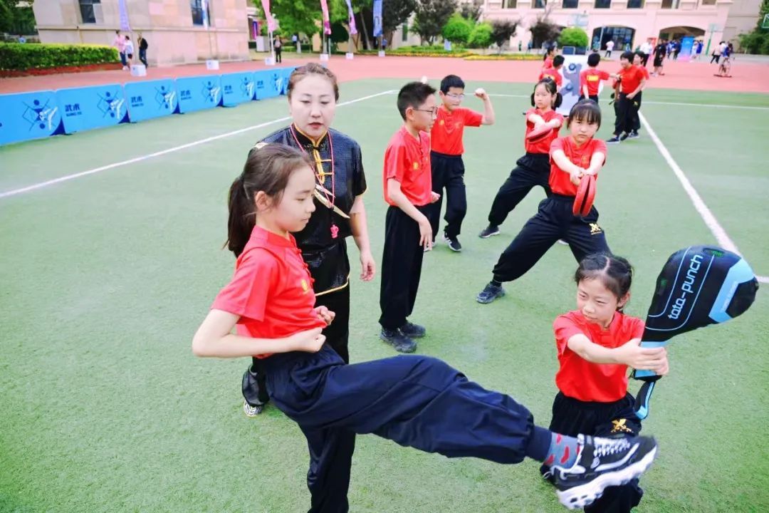 体育活动展示现场,足球、篮球、排球、橄榄球各展风采,花样跳绳与旱地冰壶轮番亮相,还有武术、搏击、射箭、平衡车等共计10余个项目精彩纷呈,共同勾勒出一幅全景式体育教育生态画卷。