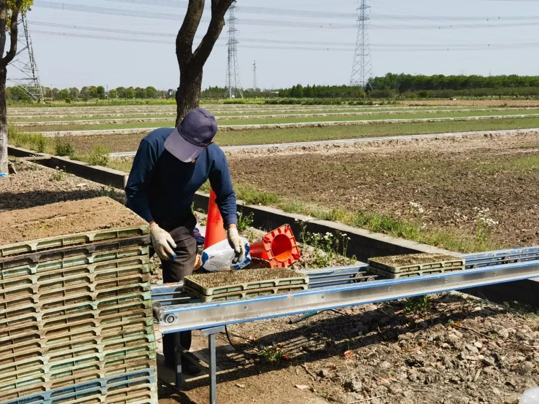 在已经完成耕翻的农田里,农户们正忙着流水线育秧,只见他们将一盘盘秧苗盘放入传送带,再将其整齐码放在田里,随后再覆盖上无纺布以达到保温、保湿效果,最后打开沟渠的水管进行水封。别看步骤简单,其中却有不少讲究。“水不能太多也不能太少,秧盘放置的高度也要适中,不然就容易淹死或者干死。”农户杨师傅告诉记者。