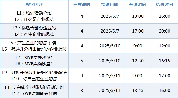 上海创业培训“马兰花计划” —FUTURE TECHNOLOGY— 奉贤GYB班火热报名中! 为贯彻落实党中央、国务院决策部署,提升劳动者就业创业能力,促进劳动者成功创业并通过创业带动就业,奉贤区人社局全面推广上海创业培训“马兰花计划”。奉贤区第三期GYB班即将开班,诚邀有创业意向的小伙伴报名参加! “马兰花计划”GYB班简介 01 课程目的 “马兰花计划”GYB培训,即创业意识激发期培训。旨在帮助创业者了解什么是企业和企业想法,分析评估是否适合创办企业,通过掌握产生企业想法的方法产生很多的创业项目,并从中筛选、分析、确认最适合的创业项目。 02 课程学时 课程不少于3天,24课时。 03 课程内容 04 课程报名 本次培训课程不收取费用,拟招募有志于在奉贤区自主创业的意向创业者,报名后需面试通过方可入学,正式开课后原则上不予请假。 培训介绍 01 培训时间 2025年5月7日(周三) 2025年5月10日(周六) 2025年5月11日(周日) 02 培训地点 上海城建职业学院(上海市奉贤区南亭公路2080号) 03 培训课表 点击可看大图 报名方式 报名时间 即日起至2025年4月30日 报名方式 意向参训学员请填写附件创业培训学员入学登记表发送至报名邮箱 fxcy2024@163.com 上海创业培训“马兰花计划”学员入学登记表.docx 联系电话 021-67196006 何老师 固定布局 工具条上设置固定宽高, 背景可以设置被包含, 可以完美对齐背景图和文字, 以及用于模板制作。