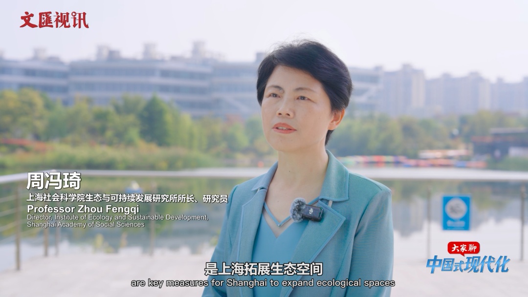 中国式现代化是人与自然和谐共生的现代化。近年来,上海坚定不移地走生态优先、绿色低碳发展之路。2025年底,上海公园总数将超过1000座。“大家心目中的公园城市是什么样子呢?”上海社会科学院生态与可持续发展研究所所长、研究员周冯琦给观众提了个问题,她自己的回答是:“我心目中的公园城市不是简简单单地在城市中建公园,而是要努力把城市建成一座大公园,实现公园与城市空间的无界融合。”
