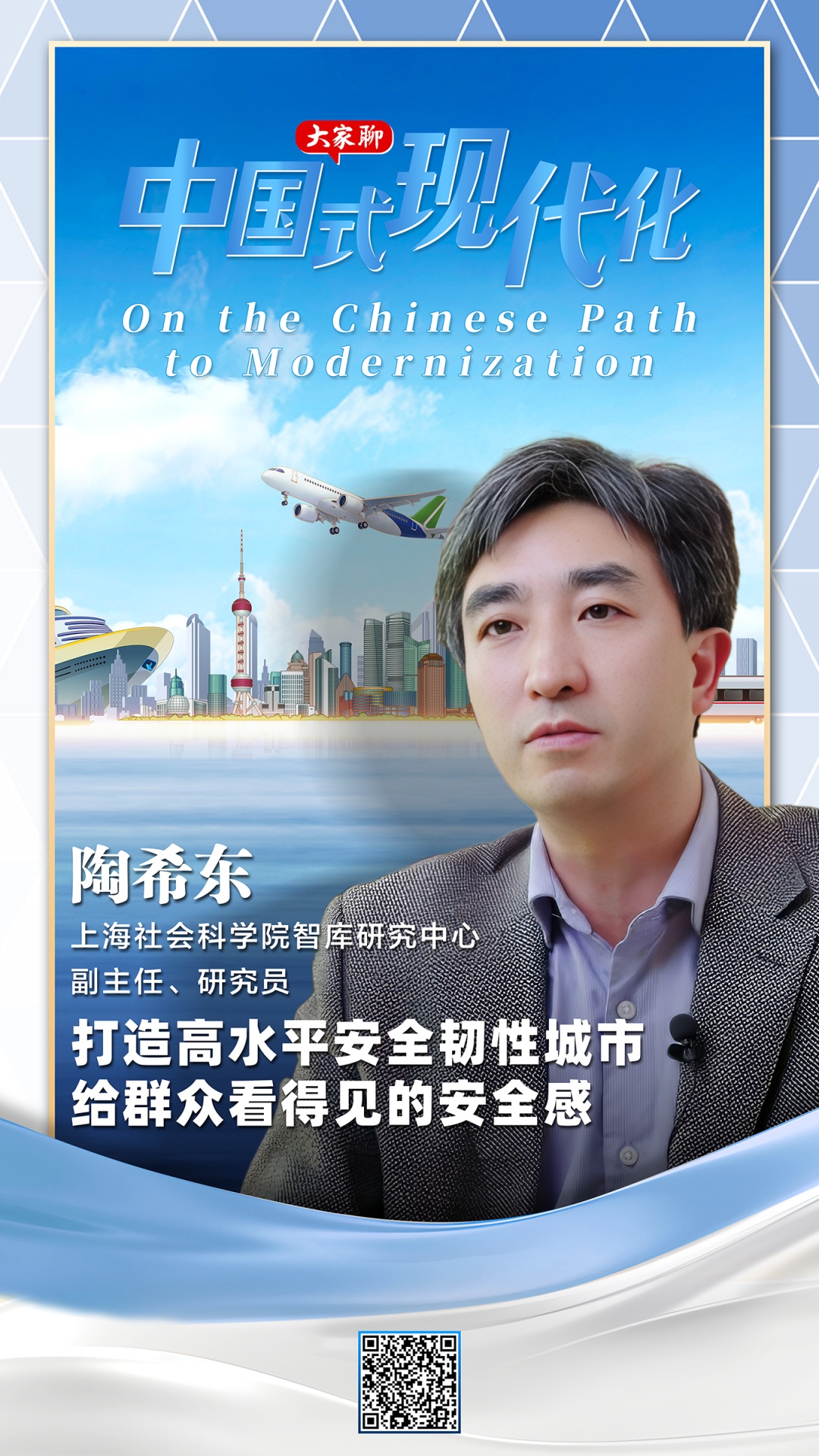读懂中国,读懂中国式现代化。在中共上海市委宣传部指导下,中共上海市委网信办、中共上海市委外宣办、上海社会科学院与文汇报社联合出品的《大家聊中国式现代化》系列短视频今天推出第七集,上海社会科学院智库研究中心副主任、研究员陶希东带你走进基层治理“窗口”静安区临汾路街道,探寻超大城市安全韧性建设的生动实践。《大家聊中国式现代化》每日更新一集,邀请上海社科院专家学者生动阐释和分析中国式现代化和全面深化改革的实践经验和重大成就,聚焦基层实践、解读真实案例,将学理观察与场景、案例相融合,在“思想导游”中触摸城市,感知中国式现代化磅礴力量。近年来,如何打造安全韧性城市,已成为摆在世界各国各大城市面前的一个重大而紧迫的战略议题。陶希东指出,上海作为中国最大的沿海国际大都市,坚持技术和制度双轮驱动,将上海打造成为最安全、最有韧性的城市之一,走出了一条具有中国特色的超大城市治理新路。走进临汾路街道,一路踏访,从24小时不打烊的“数字小屋”、餐食丰富的社区食堂、为老服务中心,到党群服务站、城运管理中心、电梯应急服务中心、社区安全中心……“街道聚焦基层治理痛点难点问题,以解决群众‘急难愁盼’为导向,通过技术赋能,创新实践数字化治理新路。”陶希东说,比如在老小区加装电梯管理方面,临汾路街道建立了加梯工作室,在加装电梯的后期维护阶段,街道率先成立电梯应急服务中心,更好地保障了加梯安全。通过构建基层社会治理的“数字全景图”,创新多样化的应用场景,增强了社区家园的“数字温度”和基层问题发现能力、应急处置能力,在家门口给老百姓提供高品质生活。陶希东指出,构筑安全韧性城市是一项复杂、多元的系统工程,既要注重设施、场所、空间等硬韧性的建设,又要注重制度、文化、治理、技术、服务、管理等方面的软韧性支撑,更要有政府、市场、社会、民众多元主体的共同参与和跨界合作,尤其是城市治理要始终站在以人民为中心的立场,提高城市服务水平,健全城市应急体系,加大科技应用,积累地方经验,以强大的社会凝聚力,切实增强居民、社区应对突发灾害的能力水平,发挥应有的主体性和能动性。“上海在安全韧性城市建设,走超大城市治理现代化新路方面,已经有很多可圈可点的经验,老百姓的安全感、获得感、幸福感满满。”陶希东认为,随着中国式现代化进程不断推进、不断深入,超大城市治理现代化的能力和水平也会得到提升,将进一步保障中国式现代化进程行稳致远。
