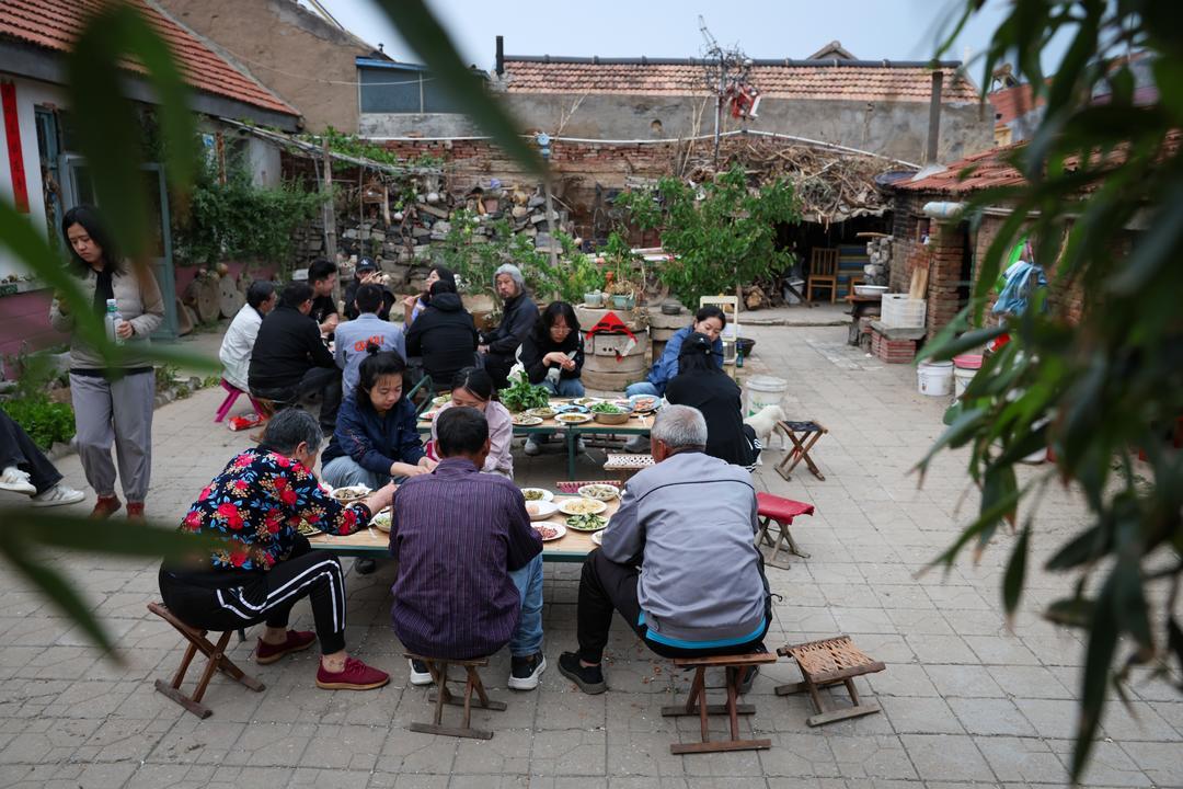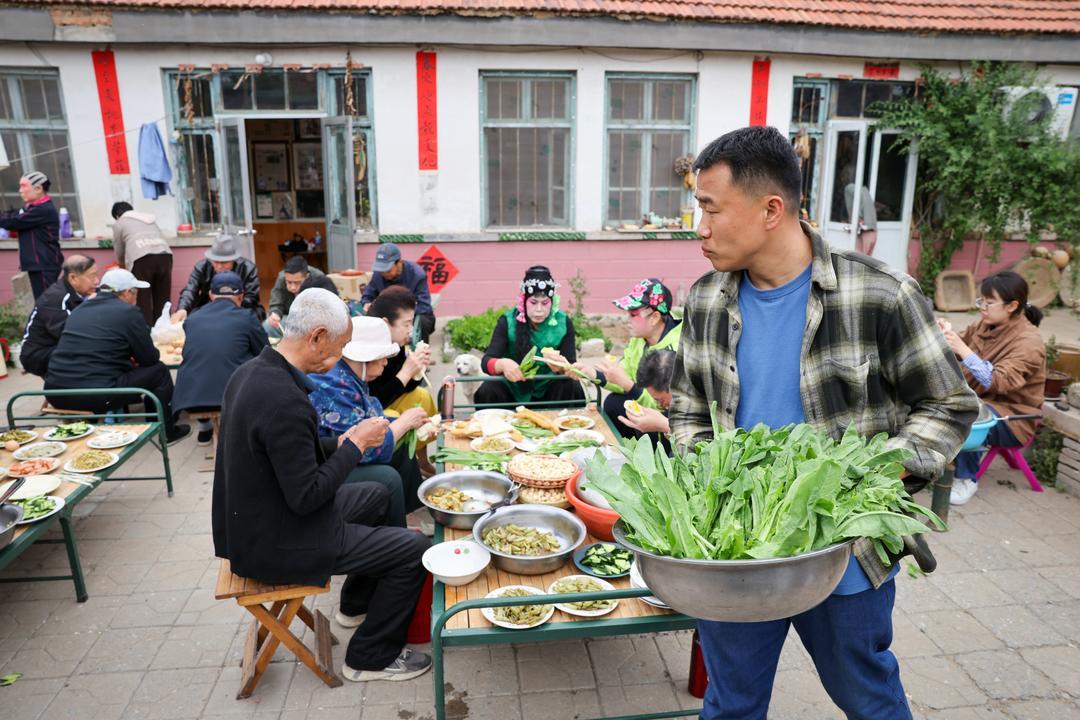 牟昌非是从牟家院村走出去又返乡的青年。这些年,他在村里可没少折腾。除了这乡村戏剧节,还把“乡村图书馆”“乡村瑜伽”都引进了村里。戏剧节期间,整个村子都热闹起来,昌非的父母、亲戚也跟着忙前忙后。那些来参加戏剧节的人,吃住都在昌非家里。采购食材、做饭、洗碗,这些活儿一桩接着一桩,根本忙不完。每天忙到最后,最后一个吃饭、最后一个睡觉的,永远是昌非的母亲孙瑞芹。您说,这老人家得多辛苦?可她嘴上没一句抱怨,心里想着的,大概就是儿子办的事儿热闹,能给村里带来不一样的变化,再累也值得。