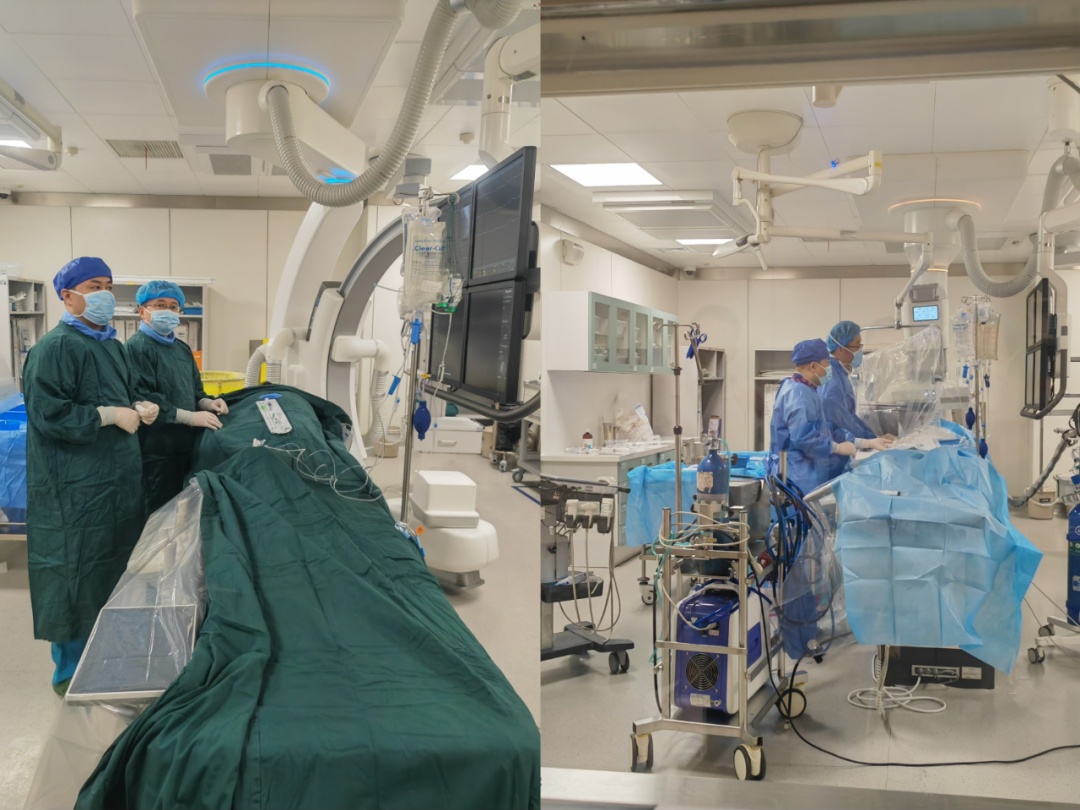 18时10分姜奶奶顺利转至聊城市人民医院胸痛中心就诊,绕行急诊及心内科病区,直接将姜奶奶送至导管室进行手术。此时,心内科副主任梁明亭、韩前峰,导管室护士长杨兰菊、护士康爱民已准备就绪。