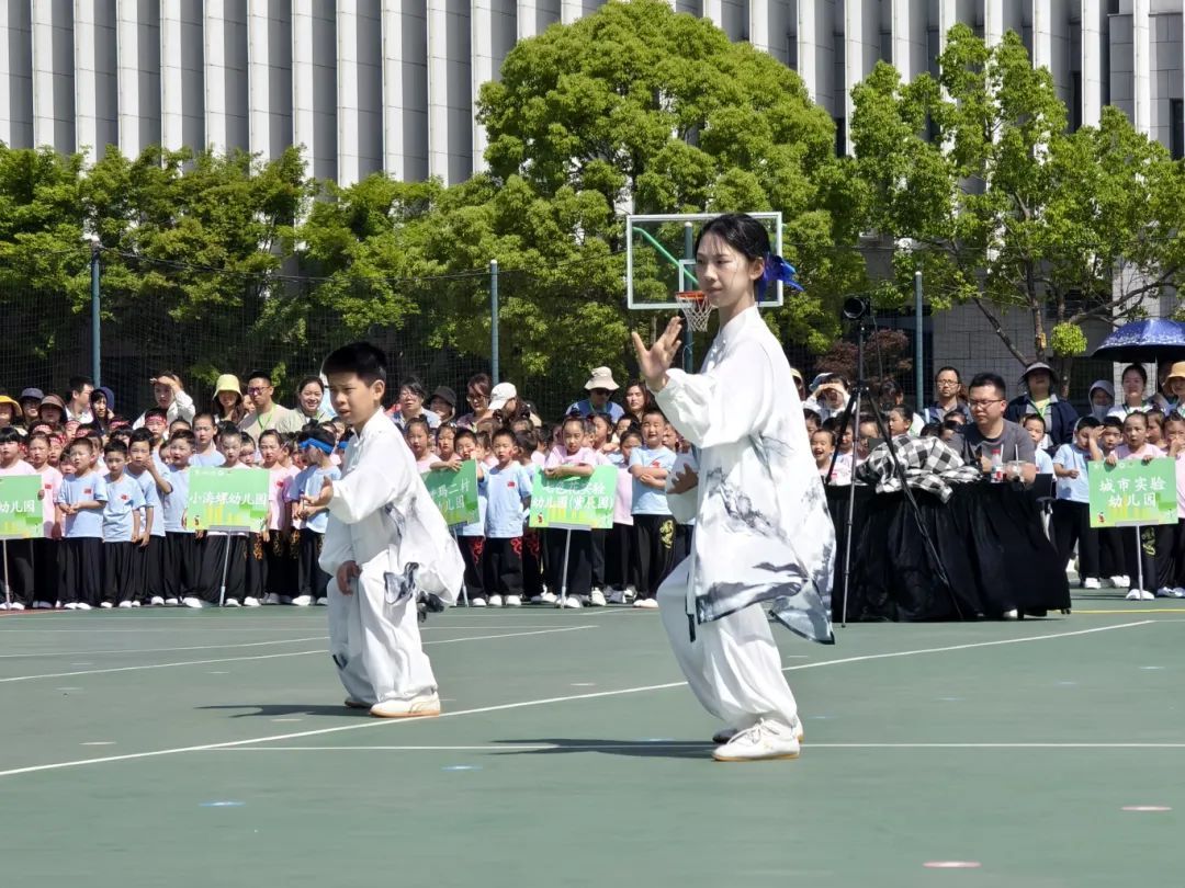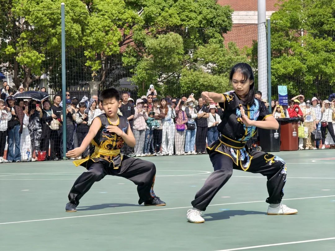 当天上午9点,比赛在宝山体育中心户外运动场开始。这天的宝山蓝天白云、微风习习,为“武术萌娃”和观赛市民带来了很好的体验。
