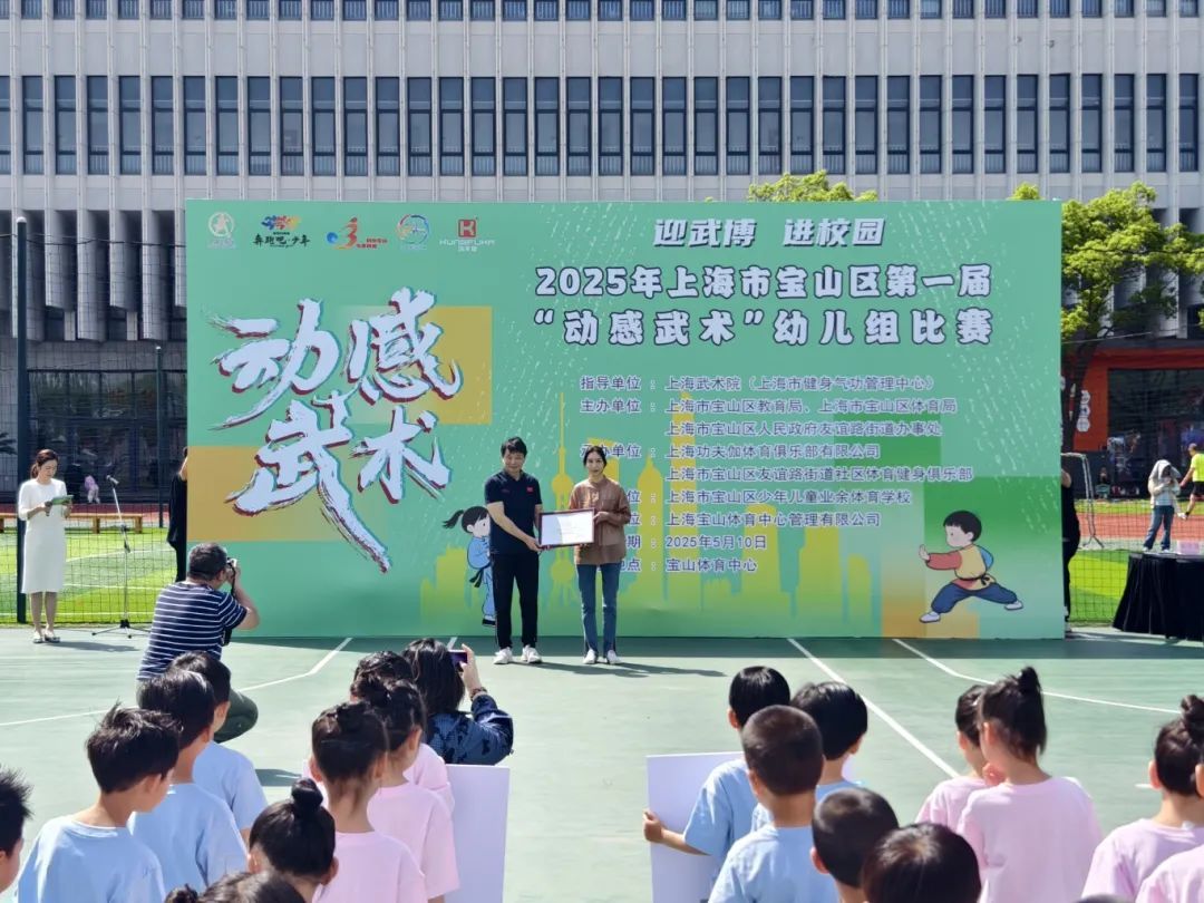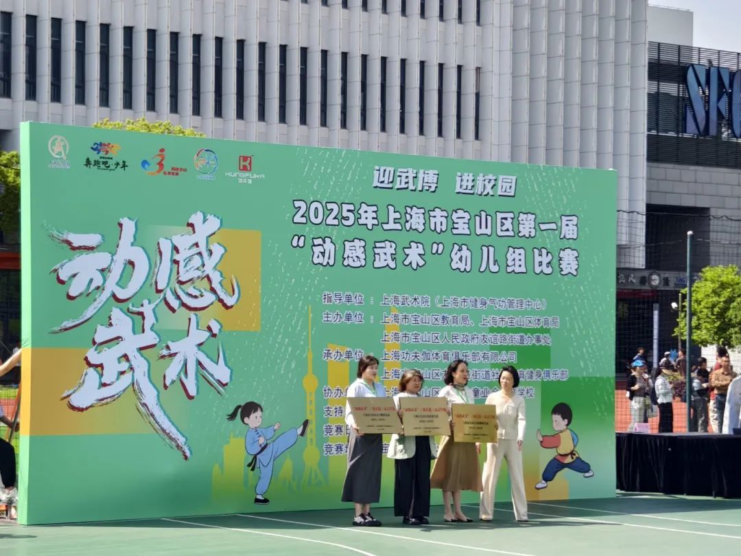 本次比赛,宝山共有22所幼儿园队伍报名参加,运动员人数超过400人,多所学校获得动感之星、活力之星、闪亮之星等荣誉证书。本次大赛开幕式中,宝山区有7所幼儿园成为首批动感武术试点学校,并被授予铜牌。