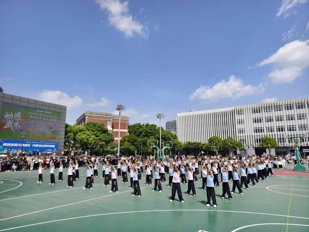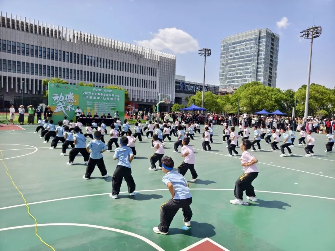 近日,2025年上海市宝山区第一届“动感武术”幼儿组比赛在宝山体育中心举行。宝山的“武术宝宝”们精彩亮相,用整齐的步伐姿态和灵动的招式动作展现风采,挥洒他们对“动感武术”的热爱。