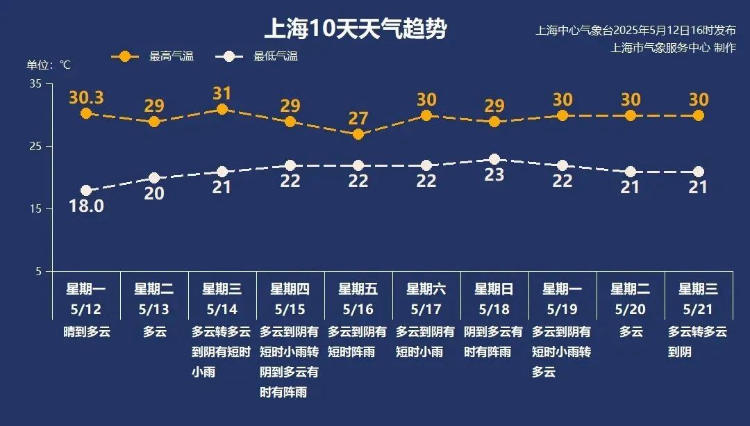 天气早知道 今日天气 今天是多云的好天气,早晨最低气温回升至20℃左右,白天最高气温29℃上下,热意不减。上午起风力略有增大,南到东南风4~5级阵风6级,沿江沿海地区5级阵风6~7级。相对湿度85%~35%。建议大家外出注意防晒、及时补水,换季洗晒也抓紧安排。 天气指数 紫外线 人体舒适度 花粉浓度 中等 注意防护 舒适,宜穿单衣类服装 中 适当防护 火险指数 洗晒指数 户外指数 可燃 注意防火 光照较好 适宜洗晒 风较大 不太适宜 天气趋势 周三夜里开始云系增多,弱降水上线。周中后期暖湿气流活跃,本市彻底晴朗的天气变少,降雨天气增多,不过以短时阵雨为主。晴雨转换频繁,大家出门不妨带把伞,遮阳防雨两不误。 天气明显变热,未来几天最低气温稳稳拿下“2”字头,最高气温维持在27℃~31℃,满足“连续5天日平均气温都在22℃以上”这个入夏条件的可能性很大。加上湿度升高,难免会有闷热感。夏意渐显,大家做好准备,清凉穿搭,合理安排生活和出行。 健康贴士 说到午睡,这可是很多人一天中最期待的“惬意时刻”,不仅能驱散困意,还能为疲惫的身体注入满满活力。 午睡的关键在于“适度”——避免过长的午睡时间,以免对夜间睡眠造成干扰,同时又能在白天适当地恢复精力。研究显示,最佳的午睡时长为30分钟以内。 此外,夜间睡眠不佳的人,不应过度依赖午睡来弥补睡眠不足。相比于通过午睡“补觉”,改善夜间睡眠质量才是更健康的选择。