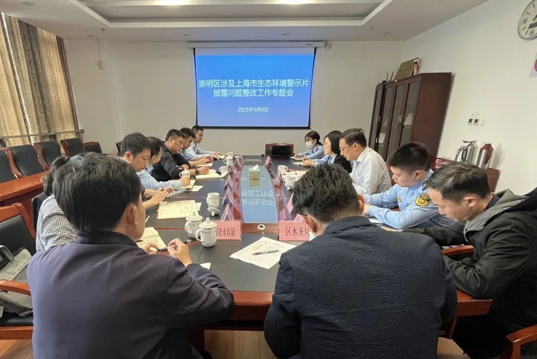 崇明区生态环境局牵头组织召开崇明区涉及上海市生态环境警示片披露问题整改工作专题会,会议通报了警示片中有关问题的基本情况,提出整改工作要求,部署下阶段整改任务。区公安分局、区建设管理委、区水务局、区市场监管局、区绿化市容局、区住房保障房屋管理局、区城管执法局、区交通委等部门参会。